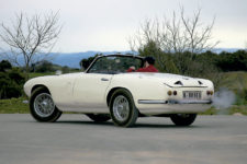 La unidad que probamos aquí esta vez, aún con la típica cruceta de la marca sin cubrir la entrada de aire frontal, es un rarísimo ejemplar, pues se trata de un Pegaso Z-102 firmado por Touring (con su típica carrocería Superleggera)… pero descapotado por el gran Pedro Serra, aunque el propietario me dice que no busque el techo duro que le puso, porque se perdió en los años 60. ¡Y eso que empieza a chispear en el pueblo de Manresa en el que estamos haciendo esta toma de contacto!