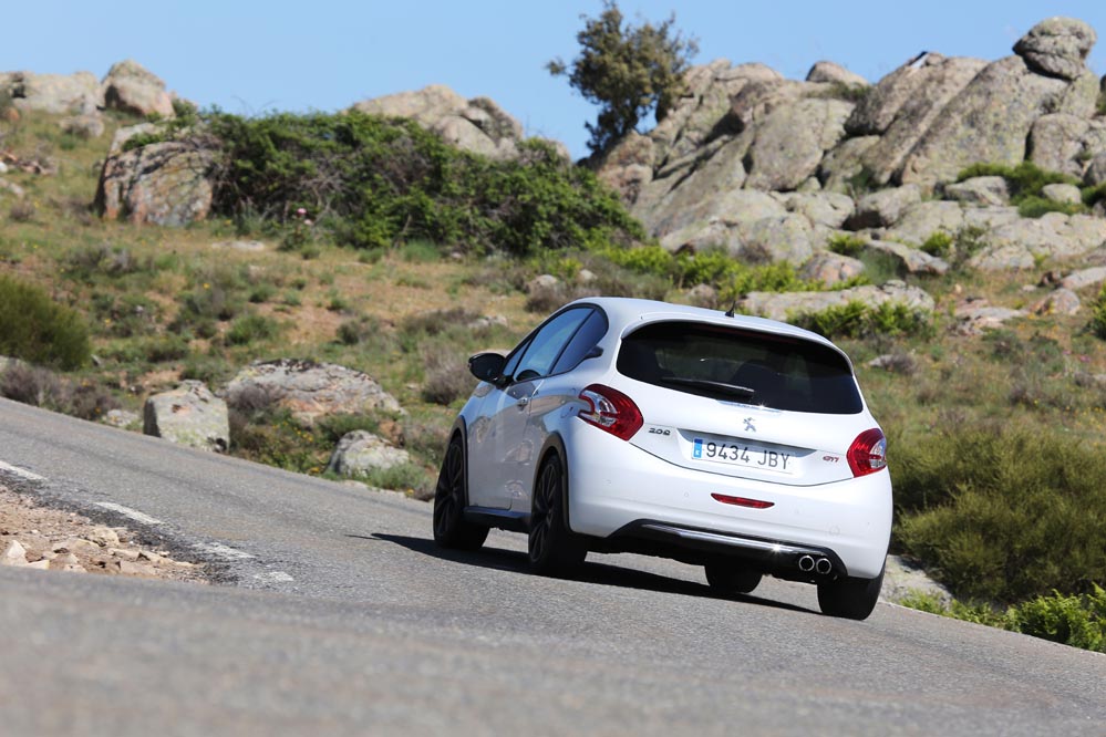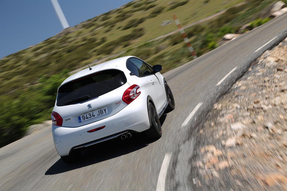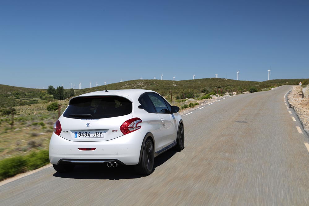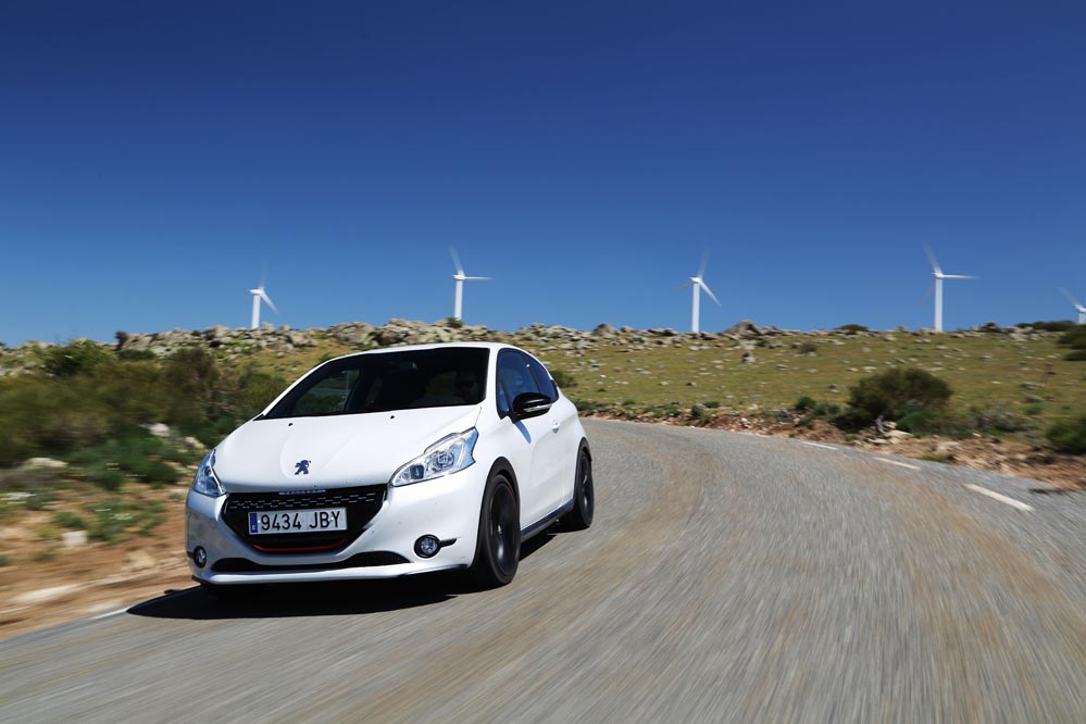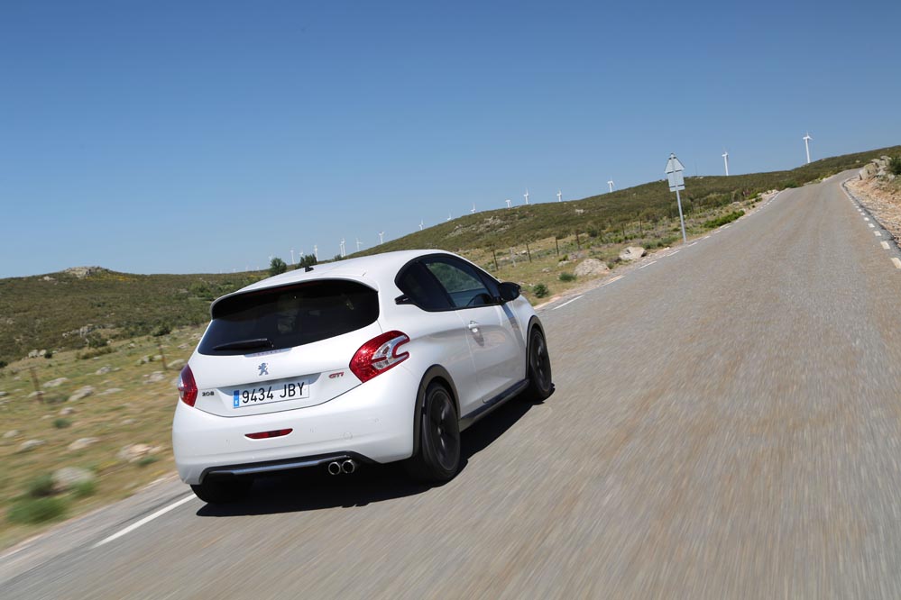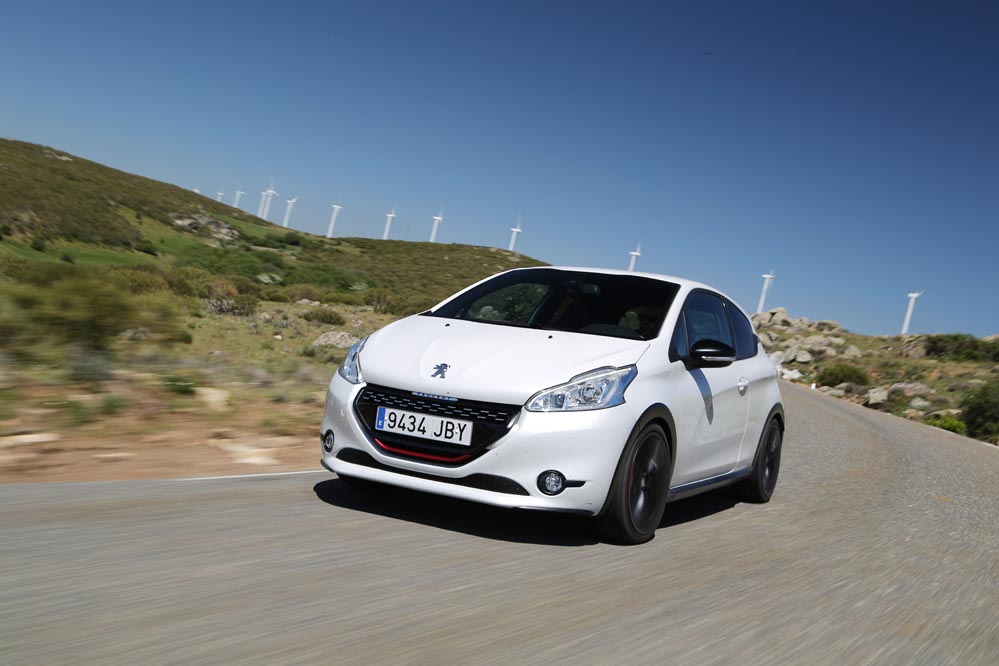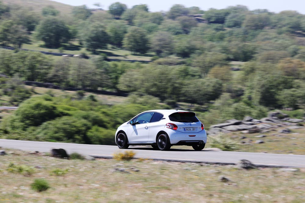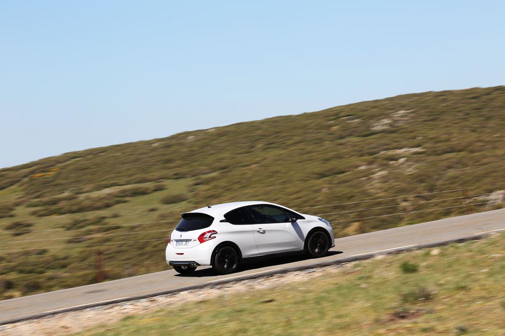 Para empezar esta versión respeta mucho más el espíritu de su predecesor que el 208 GTI 'a secas'. ¿Cómo han conseguido esto los ingenieros de Peugeot? Han rebajado su altura en 10 mm (seguro que sabes qué pasa si se baja el centro de gravedad de un coche); las vías delanteras se han ensanchado 22 mm, por 16 mm de las traseras. Como no podía ser de otra manera, también se ha "metido mano" al motor para exprimir un poco más su mecánica turboalimentada de 1.6 litros. Ahora rinde 8 CV más, hasta llegar a los 208, y su par alcanza los 300 Nm.