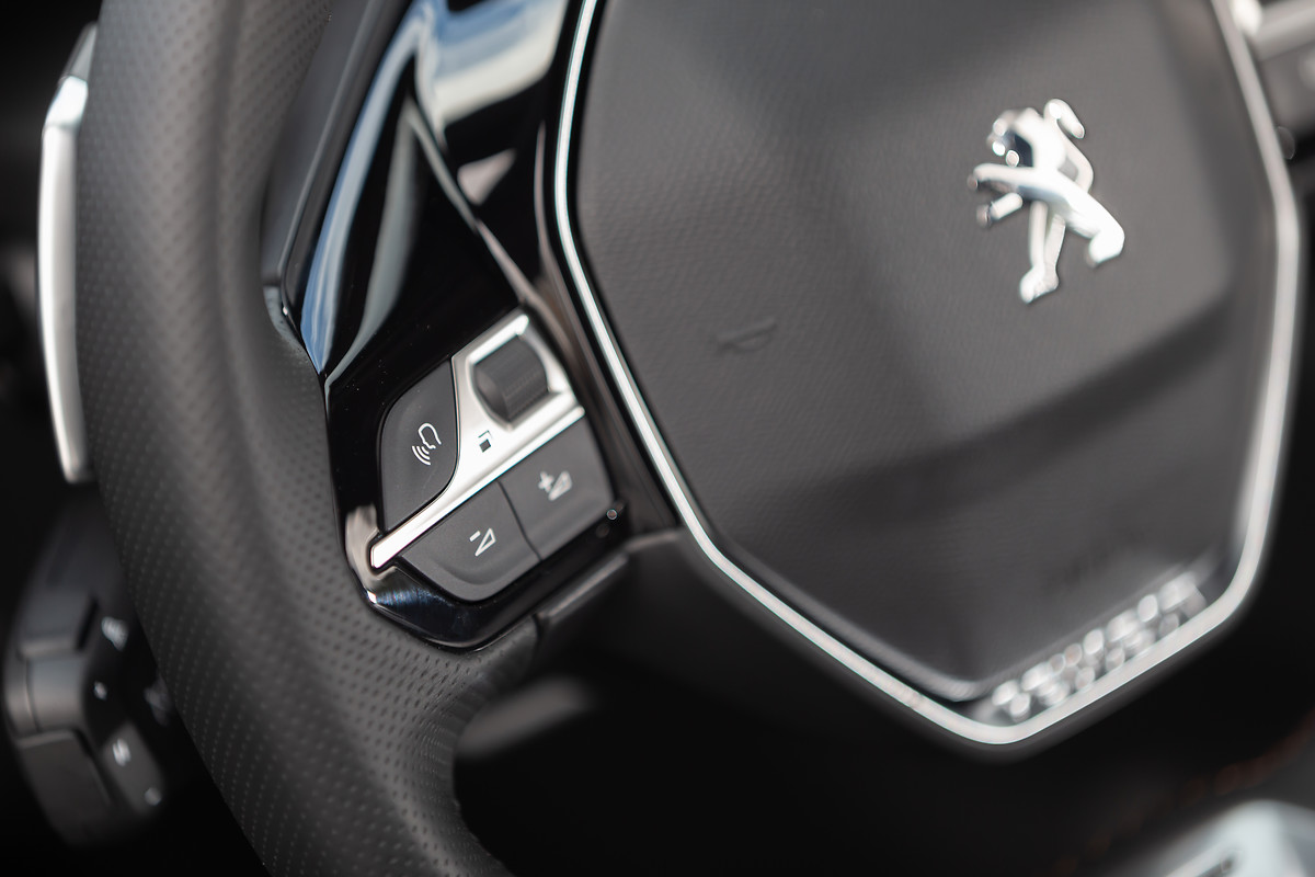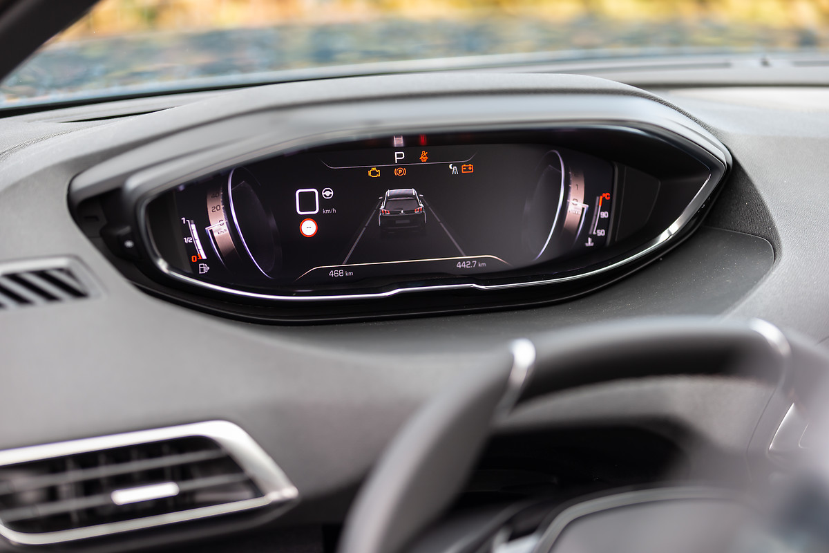 Otra nota muy peculiar de su interior es que mantiene intacto el i-Cockpit, el puesto de conducción tan propio de la firma gala, y que se caracteriza por un volante pequeño y los relojes sobre él, estos totalmente digitales, disposición que ayuda a que el viaje de nuestros ojos de la carretera a tales relojes sea brevísimo, lo que redunda en seguridad.