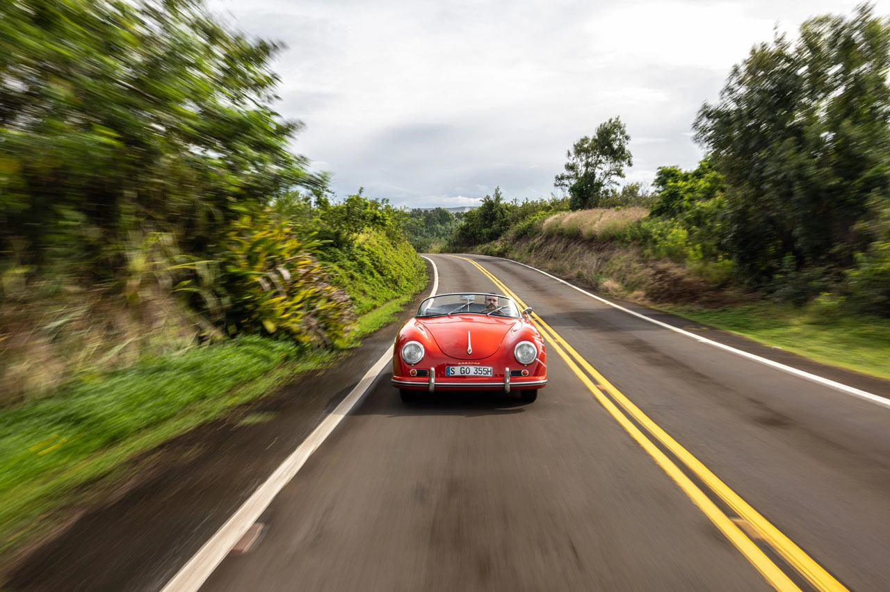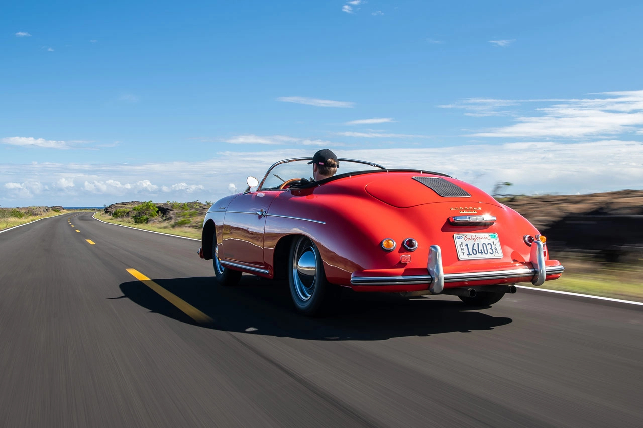 La unidad de esta prueba del Porsche 356 Speedster 1600A pertenece al museo de la firma de Stuttgart y ha sido traída hasta Hawái con motivo de una nueva Porsche Expericence, un formato tanto explicativo como inclusivo con el que se muestra y combina las tradiciones de la marca germana con la cultura, las costumbres y la historia de algunas de las partes más desconocidas del mundo. Por eso este Porsche 356 no viene solo y está acompañado por un Porsche 914/6, 911 964 Cabrio, 944 Turbo Cabrio y el más 'reciente', un Porsche Boxster 986, vehículos que también van a pasar por mis manos.