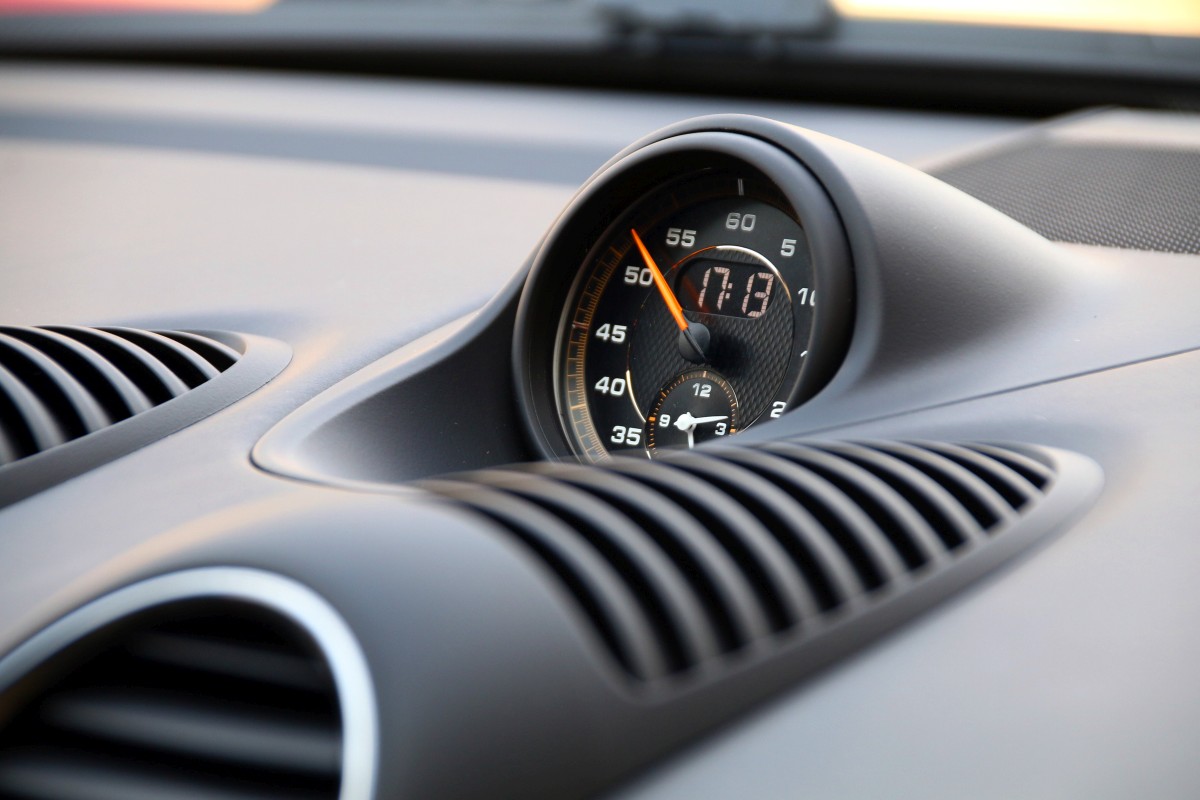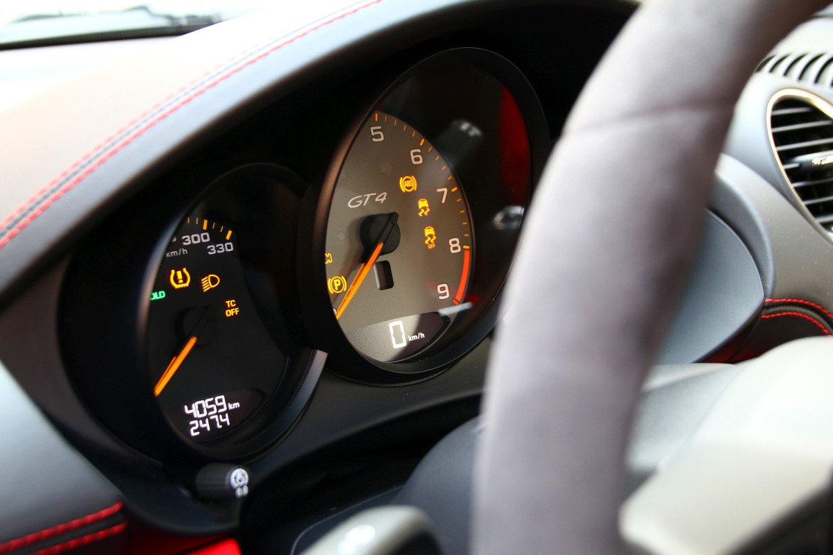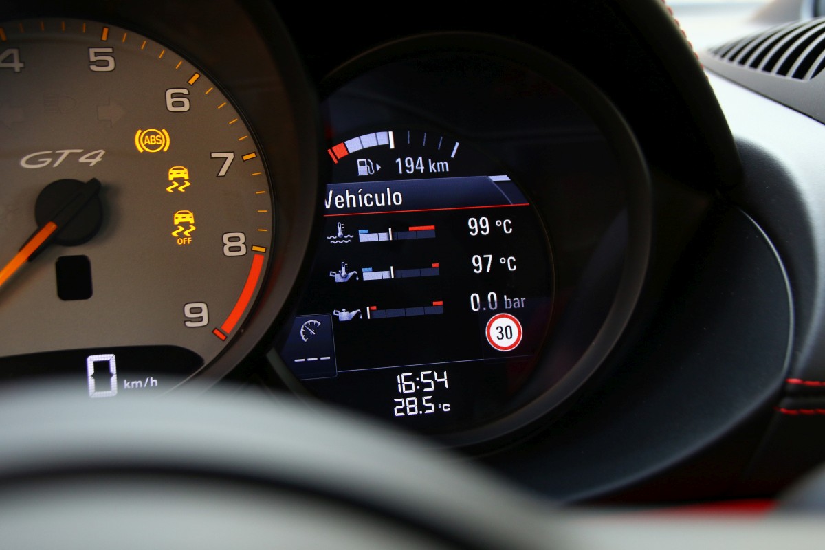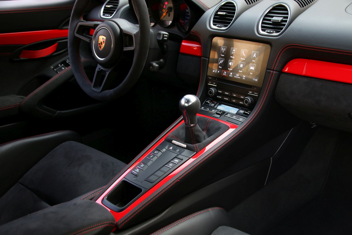 El 6 cilindros bóxer que late en posición central del GT4 (detrás del conductor) cobra vida con fuerza tras girar la llave de contacto. Toda una declaración de intenciones. La primera sorpresa llega en el recorrido urbano que me lleva de camino a mi zona de pruebas habitual. El GT4, a pesar de ser firme de chasis y relativamente incómodo por la dureza y posición de sus asientos tipo bacquet, se mueve bien en las calles. La dirección no es dura, el cambio es de tacto preciso y suave, y el embrague no solo ofrece una resistencia adecuada a la hora de pisar el pedal sino que tiene un punto de fricción generoso, que hace que las arrancadas sean siempre fáciles. Vamos, que a la hora de moverse despacio, el GT4 es un coche amable. Esto quizá le parezca poco a importante a mucha gente, dado que es un coche pensado para ir rápido y todo lo demás debería ir al saco de lo poco o nada relevante. Pero en este momento me viene a la cabeza, por ejemplo, aquel 997 GT2 que pasó por mis manos hace unos años, que me dejó serias agujetas en la pierna izquierda por su embrague de tacto infernalmente duro. Y ese coche era realmente bueno, ojo, pero aquella larga jornada en la que combiné recorridos urbanos, carreteras secundarias y circuito, me hizo despedirme de él con una cierta sensación de amor-odio que no se me va de la cabeza. Y no, eso no pasa con el Porsche 718 Cayman GT4 que pruebo, a pesar de ser un vehículo con cierto tinte de radicalidad.