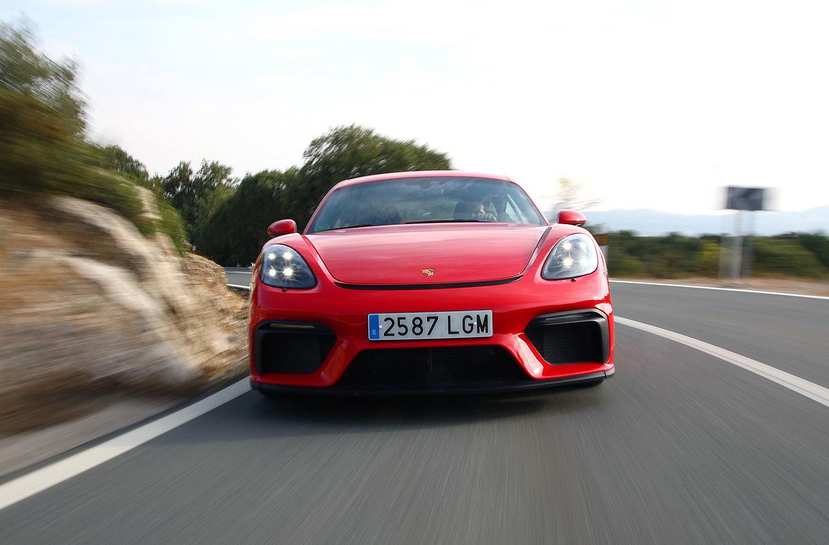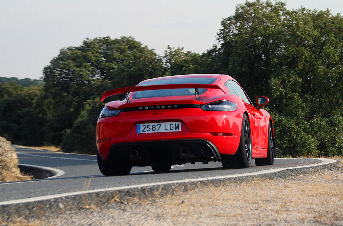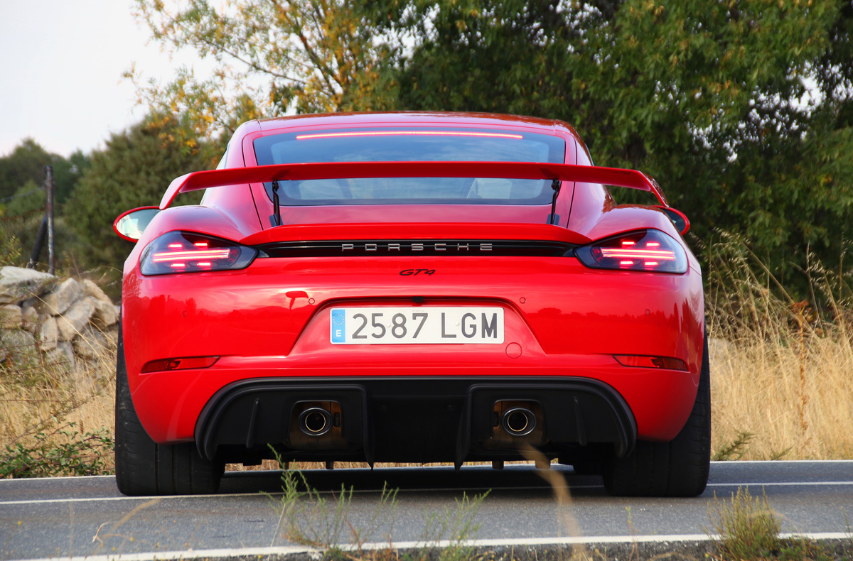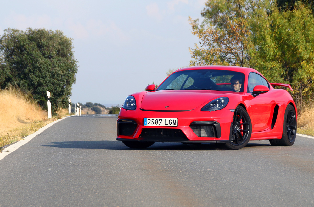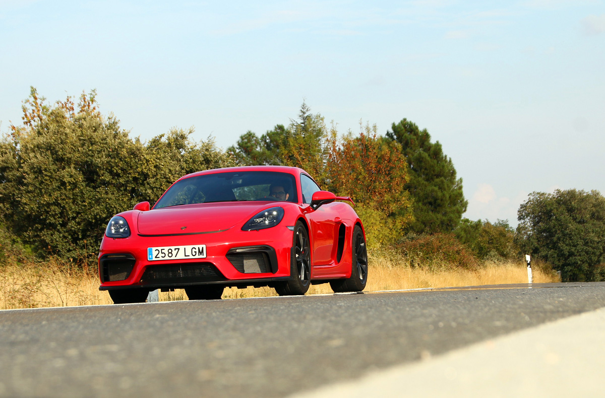 Hago esta introducción porque el deportivo de la prueba, el Porsche 718 Cayman GT4, tiene uno de los cambios manuales más sublimes que existen en el mercado (desde este mismo mes también existe en opción el PDK). Y dado que es un coche pensado para divertirse tras su volante de piel de vuelta, creo que es un buen dato a tener en cuenta dentro de su carta de presentación. Pero no es su única cualidad, tiene muchas otras. Por ejemplo, el motor. Si bien la gama actual del 718 Cayman se mueve en su mayoría con mecánicas de 4 cilindros (igual que lo hacía aquel modelo de competición de los años 50 del siglo pasado, el Porsche 718), lo cierto es que este GT4 esconde en sus entrañas algo realmente serio: un 6 cilindros bóxer atmosférico de 420 CV, que no solo logra muy buenas prestaciones sino que transporta al conductor a otras épocas.