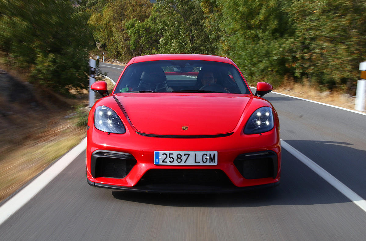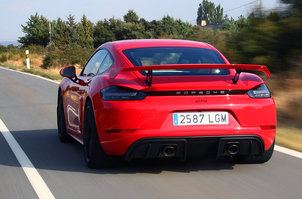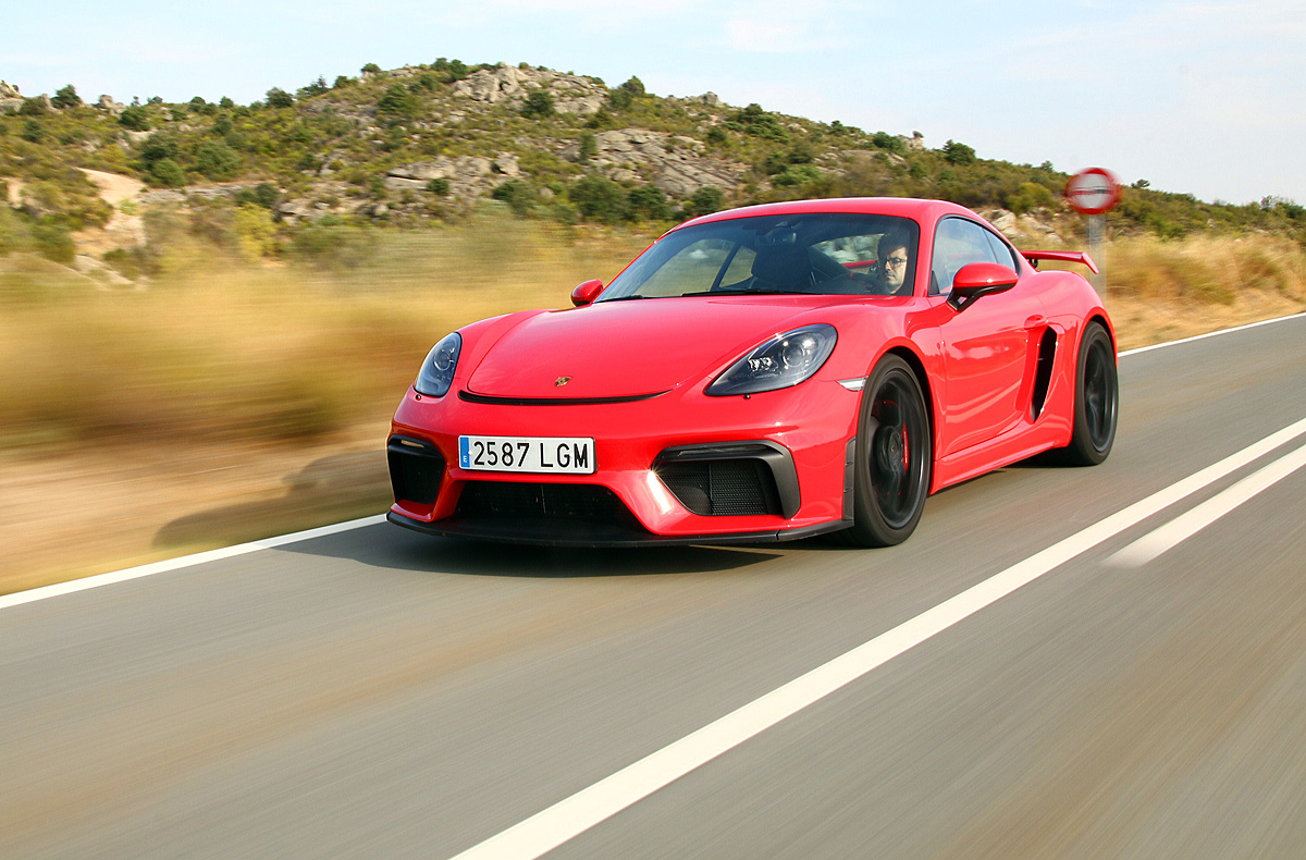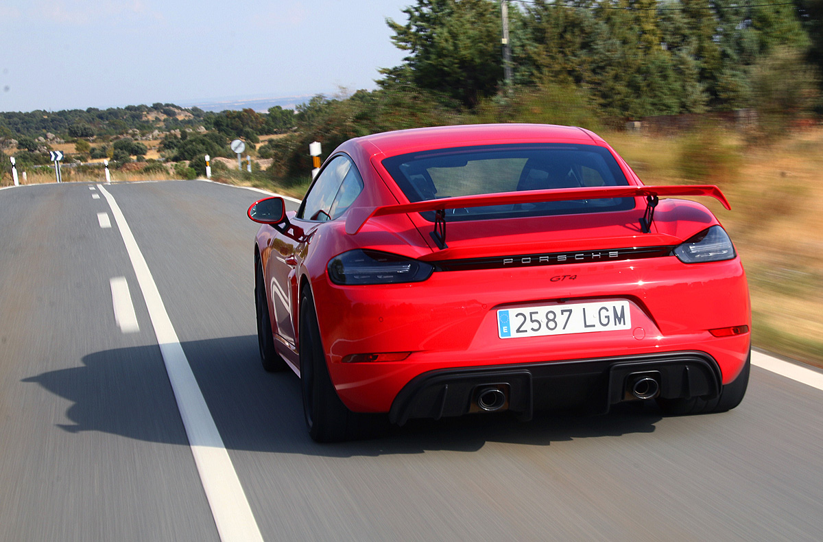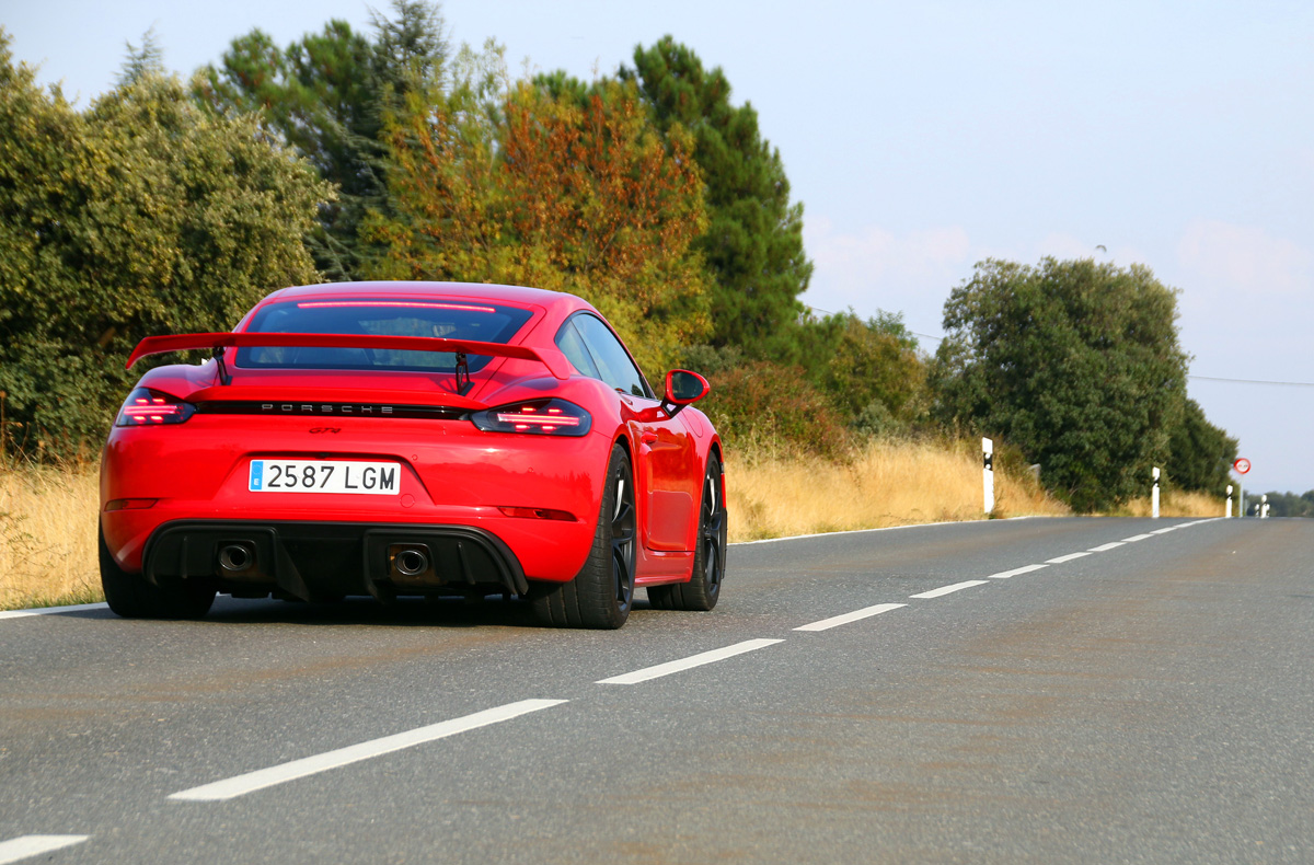 Hago esta introducción porque el deportivo de la prueba, el Porsche 718 Cayman GT4, tiene uno de los cambios manuales más sublimes que existen en el mercado (desde este mismo mes también existe en opción el PDK). Y dado que es un coche pensado para divertirse tras su volante de piel de vuelta, creo que es un buen dato a tener en cuenta dentro de su carta de presentación. Pero no es su única cualidad, tiene muchas otras. Por ejemplo, el motor. Si bien la gama actual del 718 Cayman se mueve en su mayoría con mecánicas de 4 cilindros (igual que lo hacía aquel modelo de competición de los años 50 del siglo pasado, el Porsche 718), lo cierto es que este GT4 esconde en sus entrañas algo realmente serio: un 6 cilindros bóxer atmosférico de 420 CV, que no solo logra muy buenas prestaciones sino que transporta al conductor a otras épocas.