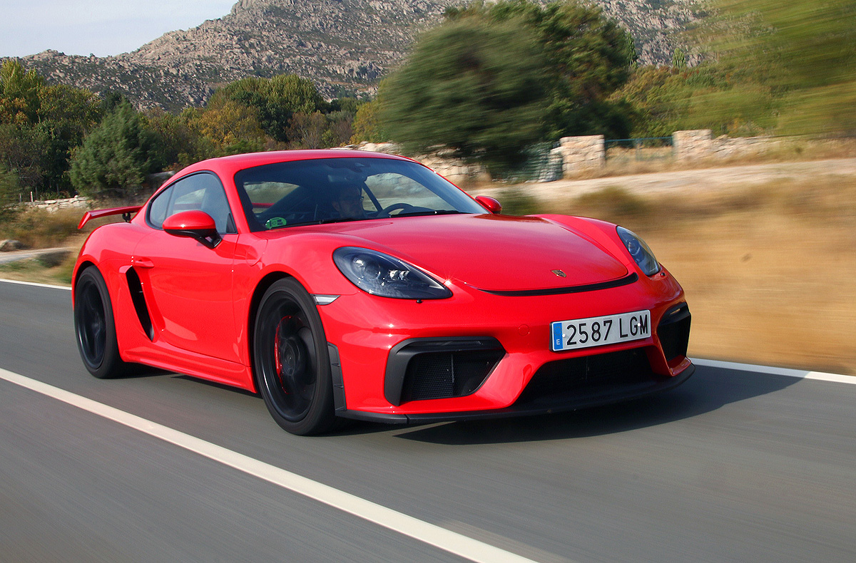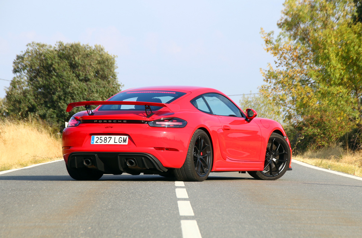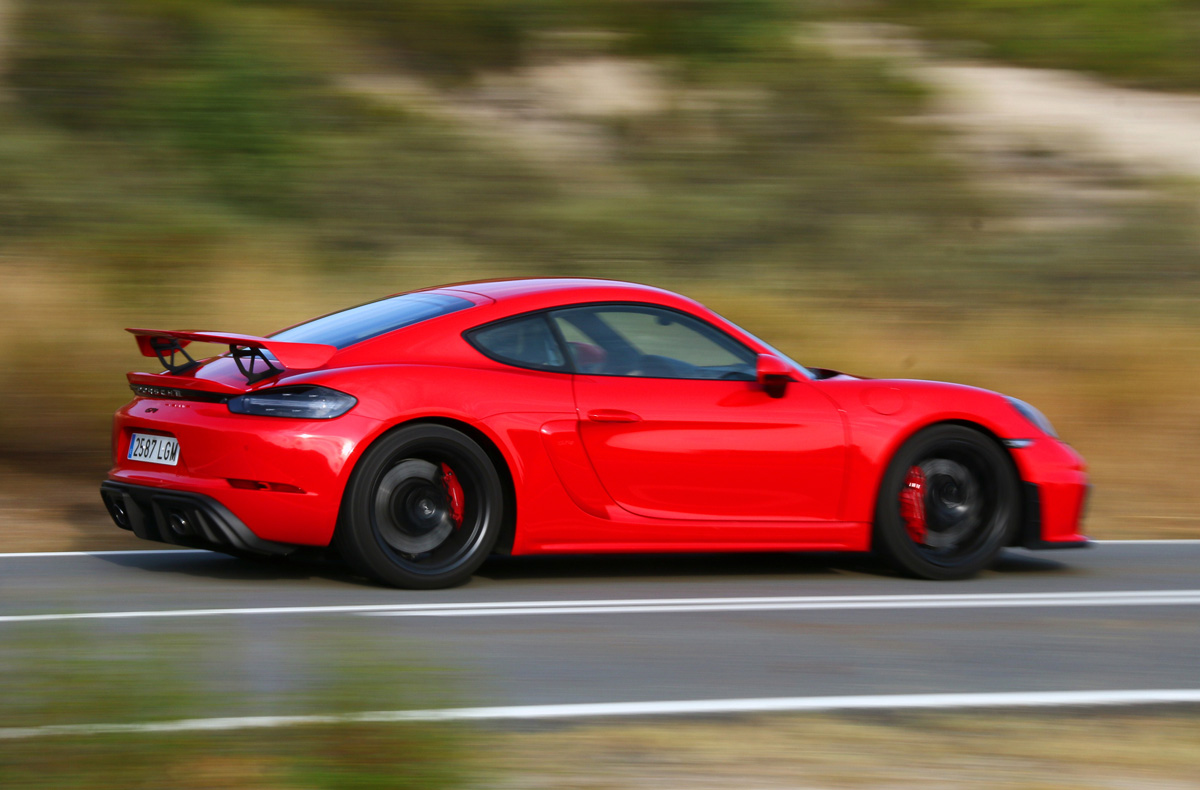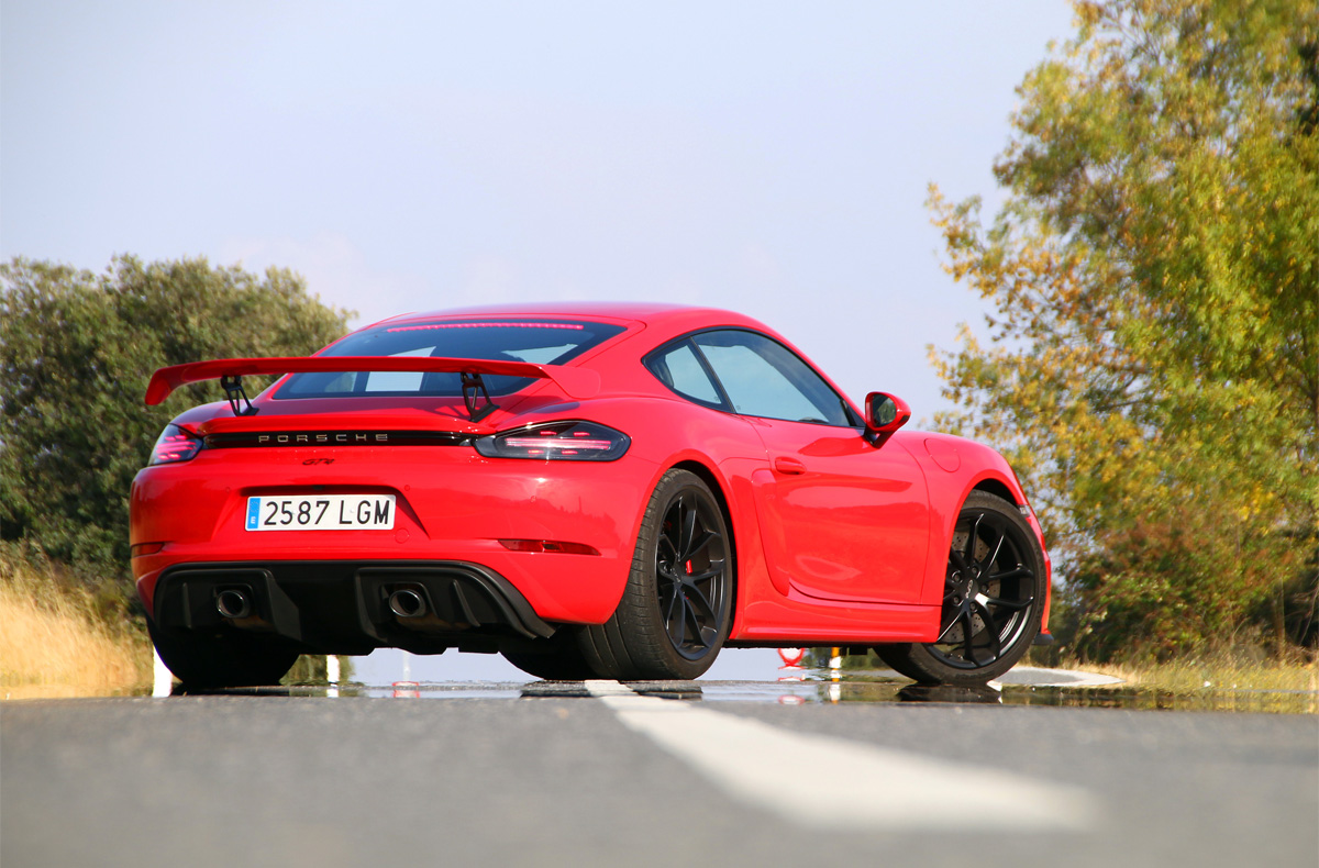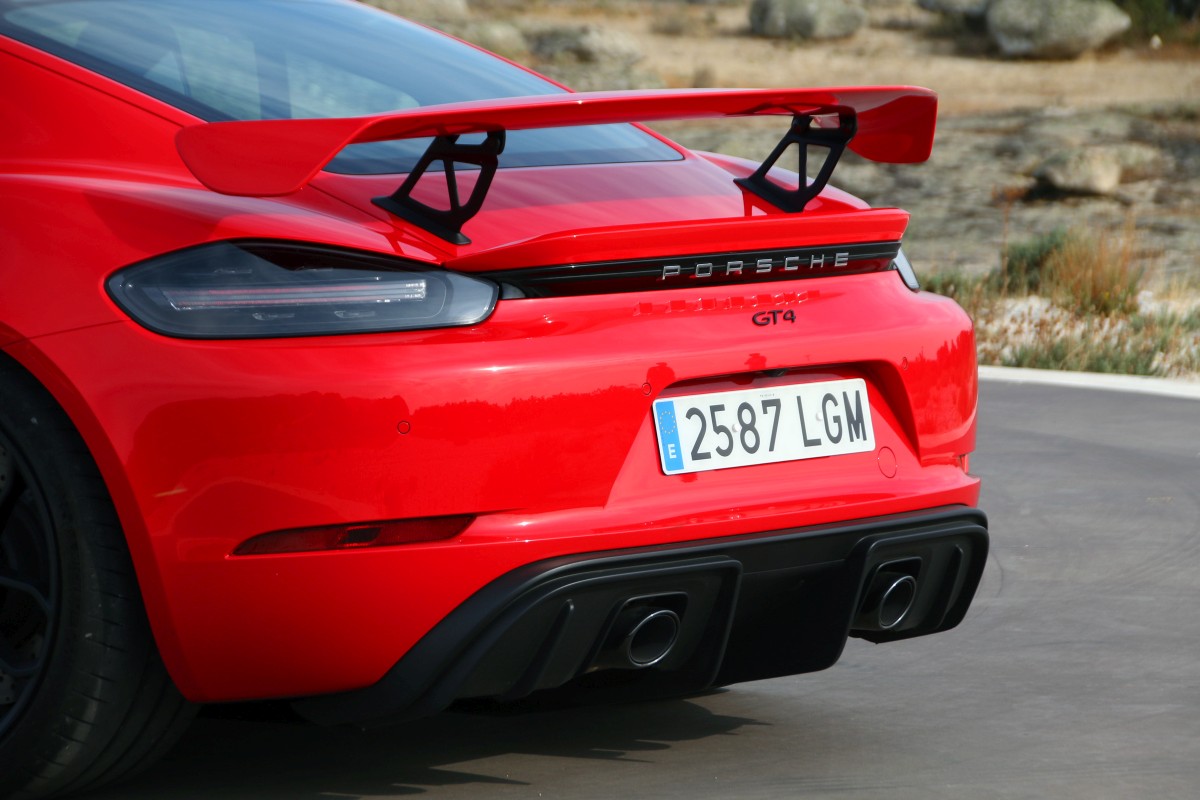 Hago esta introducción porque el deportivo de la prueba, el Porsche 718 Cayman GT4, tiene uno de los cambios manuales más sublimes que existen en el mercado (desde este mismo mes también existe en opción el PDK). Y dado que es un coche pensado para divertirse tras su volante de piel de vuelta, creo que es un buen dato a tener en cuenta dentro de su carta de presentación. Pero no es su única cualidad, tiene muchas otras. Por ejemplo, el motor. Si bien la gama actual del 718 Cayman se mueve en su mayoría con mecánicas de 4 cilindros (igual que lo hacía aquel modelo de competición de los años 50 del siglo pasado, el Porsche 718), lo cierto es que este GT4 esconde en sus entrañas algo realmente serio: un 6 cilindros bóxer atmosférico de 420 CV, que no solo logra muy buenas prestaciones sino que transporta al conductor a otras épocas.