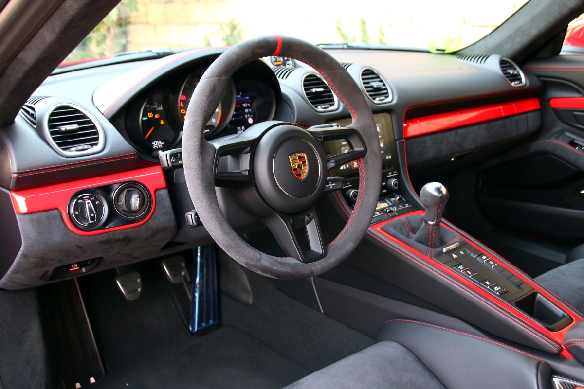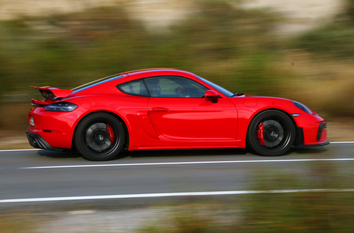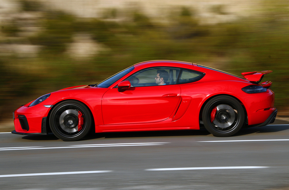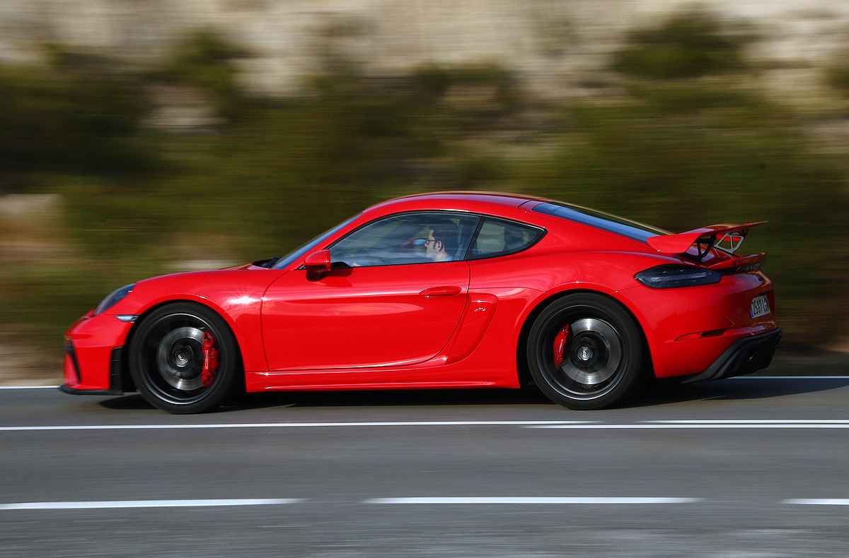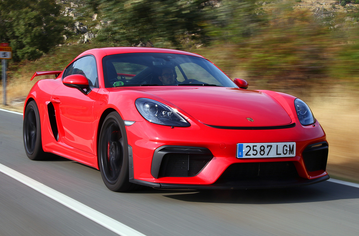 Hago esta introducción porque el deportivo de la prueba, el Porsche 718 Cayman GT4, tiene uno de los cambios manuales más sublimes que existen en el mercado (desde este mismo mes también existe en opción el PDK). Y dado que es un coche pensado para divertirse tras su volante de piel de vuelta, creo que es un buen dato a tener en cuenta dentro de su carta de presentación. Pero no es su única cualidad, tiene muchas otras. Por ejemplo, el motor. Si bien la gama actual del 718 Cayman se mueve en su mayoría con mecánicas de 4 cilindros (igual que lo hacía aquel modelo de competición de los años 50 del siglo pasado, el Porsche 718), lo cierto es que este GT4 esconde en sus entrañas algo realmente serio: un 6 cilindros bóxer atmosférico de 420 CV, que no solo logra muy buenas prestaciones sino que transporta al conductor a otras épocas.