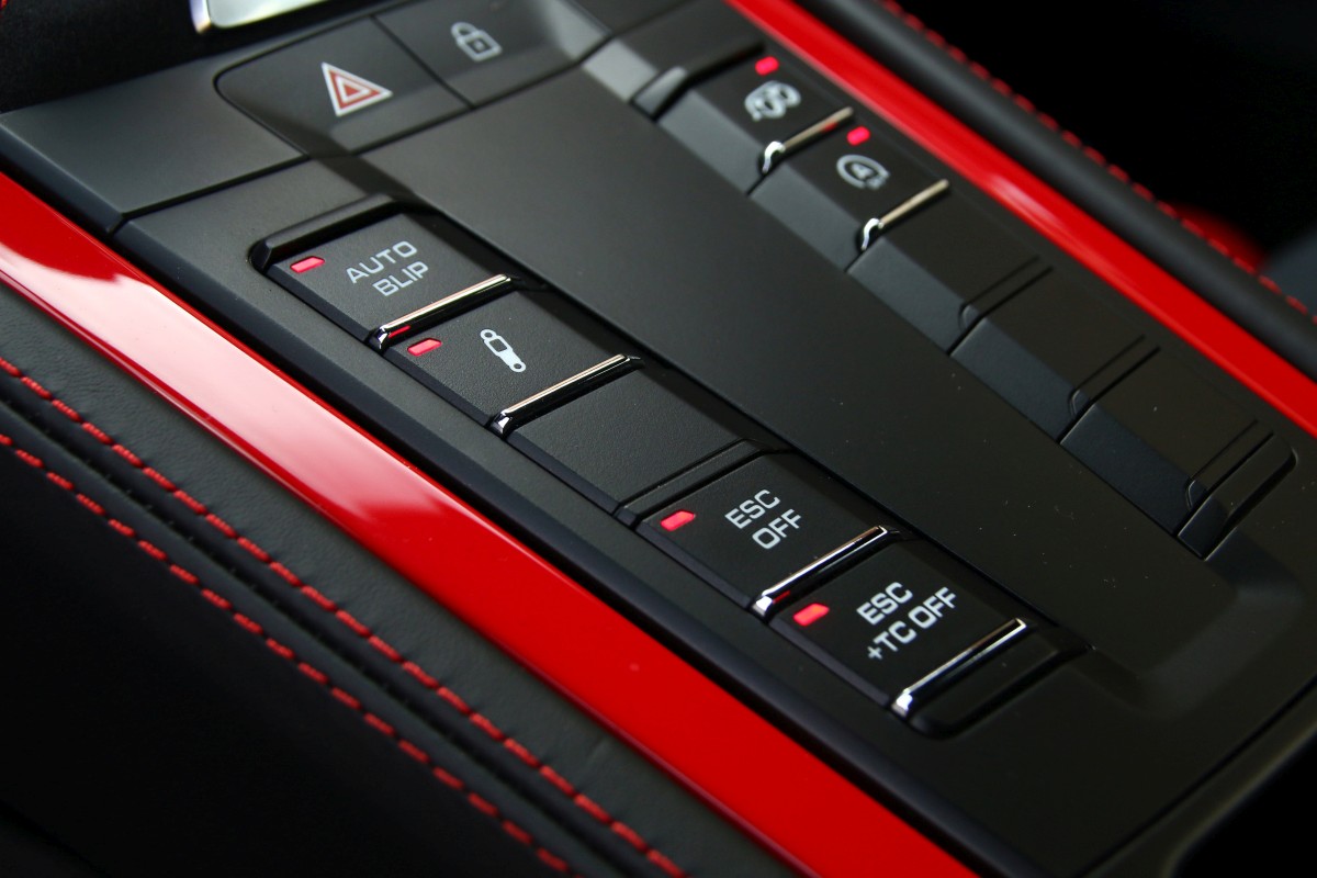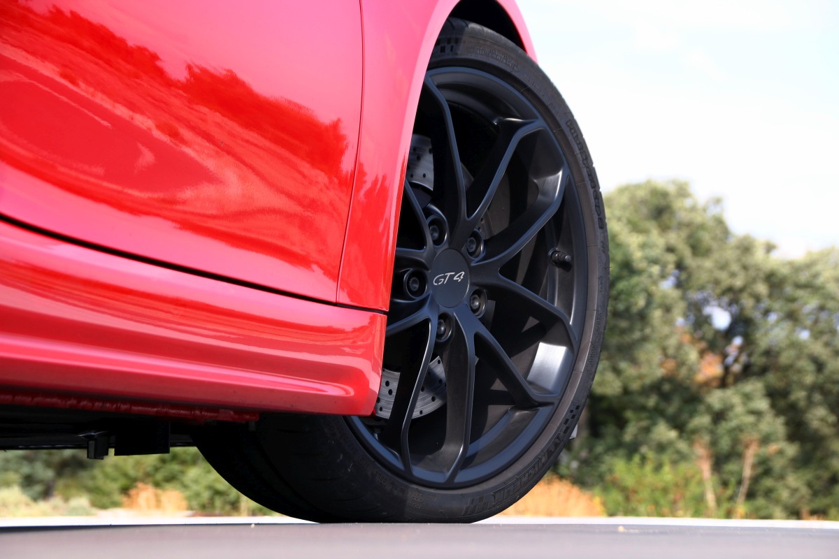 Gracias a esta puesta a punto y a unos neumáticos desarrollados ad hoc, el Cayman ofrece un paso por curva vertiginoso, muy certero y con un nivel de agarre abrumador. Tanto es así, que da miedo pensar en rebasar esa línea de grip porque las aceleraciones laterales ya serían tan elevadas que, muy probablemente, el deslizamiento de la zaga de este tracción trasera sería difícil de contrarrestar. Eso, si los controles están desactivados, claro. Algo poco recomendable a no ser que se tengan las cosas muy claras. El GT4 permite activar y desactivar el control de tracción y el de estabilidad de forma independiente, a antojo del conductor. Otro claro guiño a la deportividad, como también lo es el autoblocante mecánico que complementa al diferencial electrónico PTV o el soberbio equipo de frenos de serie con discos de 380 mm en ambos ejes que, sinceramente, hacen que sea innecesario pensar en los discos cerámicos opcionales a no ser que se vaya a hacer un uso intensivo en circuito.
