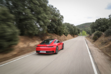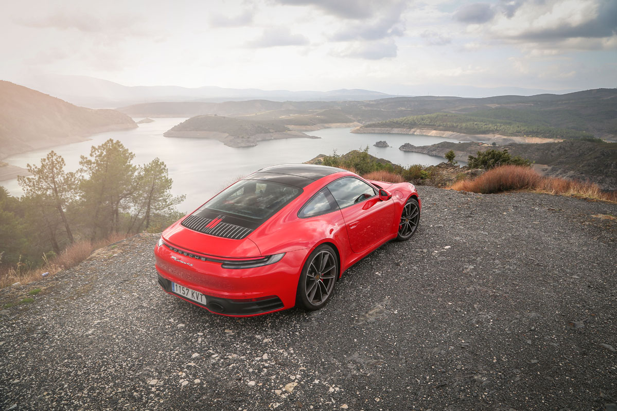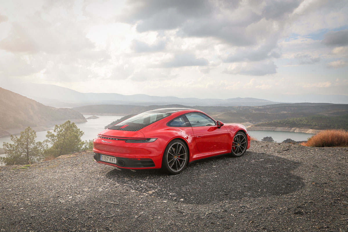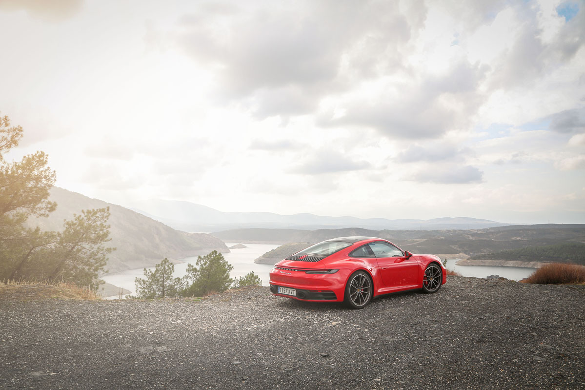 Continúo la prueba dinámica del Porsche 911 Coupé Carrera 4S 2019 en la autopista, tramo necesario para llegar al puerto de montaña que me espera. Modo Sport Plus activado. No me importa hacer kilómetros en recta, porque puedo ver la excelente aceleración de esta versión. Su bloque sobrealimentado 3.0 de 450 CV hace que este deportivo sea un misil tierra-tierra, y más con la función Sport Response, con la que el motor da el todo por el todo. Ofrece una aceleración brutal -el 0 a 100 km/h lo realiza en solo 3,6"-, aún más patente cuando la aguja pasa de las 2.300 rpm, momento en el que comienza a entregar su par máximo de 530 Nm, casi hasta el corte y sin el común lag de los motores turbo. También son vertiginosas las recuperaciones; da igual la marcha en la que se encuentre su raudo, eficaz y fiable cambio PDK de doble embrague y ocho marchas. Y todo ello, otra vez lo vuelvo a apostillar, acompañado de su sensacional sonido y de sus adrenalínicos petardeos de escape.
