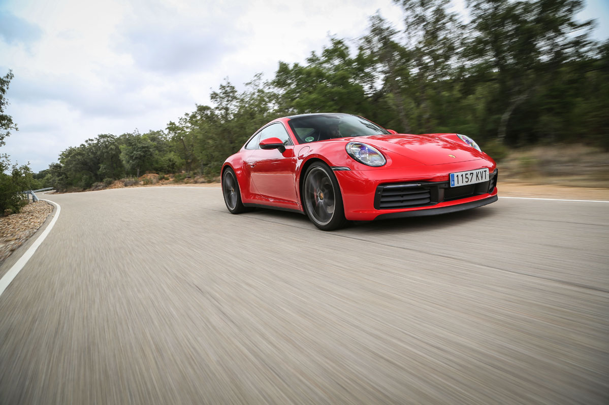 Al volante del Porsche 911 992 el tiempo pasa volando; los kilómetros, también. Llego a mi zona de curvas favorita; enlazadas, abiertas, cerradas... Todo a mi disposición, sin tráfico, para sacar la quintaesencia de este precioso coupé. Modo Manual. En los primeros giros ratifico que esta nueva generación es tremendamente efectiva. Los virajes los realiza con suma facilidad gracias a que la suspensión neumática mantiene la carrocería firme, sin balanceos, y que la dirección pone el coche donde mis ojos apuntan. Es un maldito tiralíneas. Nada de titubeos. Nada de sustos. Es muy fácil llevar rápido y sobre raíles la última generación del 'Nueveonce'. Seguro que conoces a alguien que no desempeña bien su trabajo; seguro que no es un ingeniero de Porsche, porque los tíos lo han vuelto a hacer. ¡Qué barbaridad!