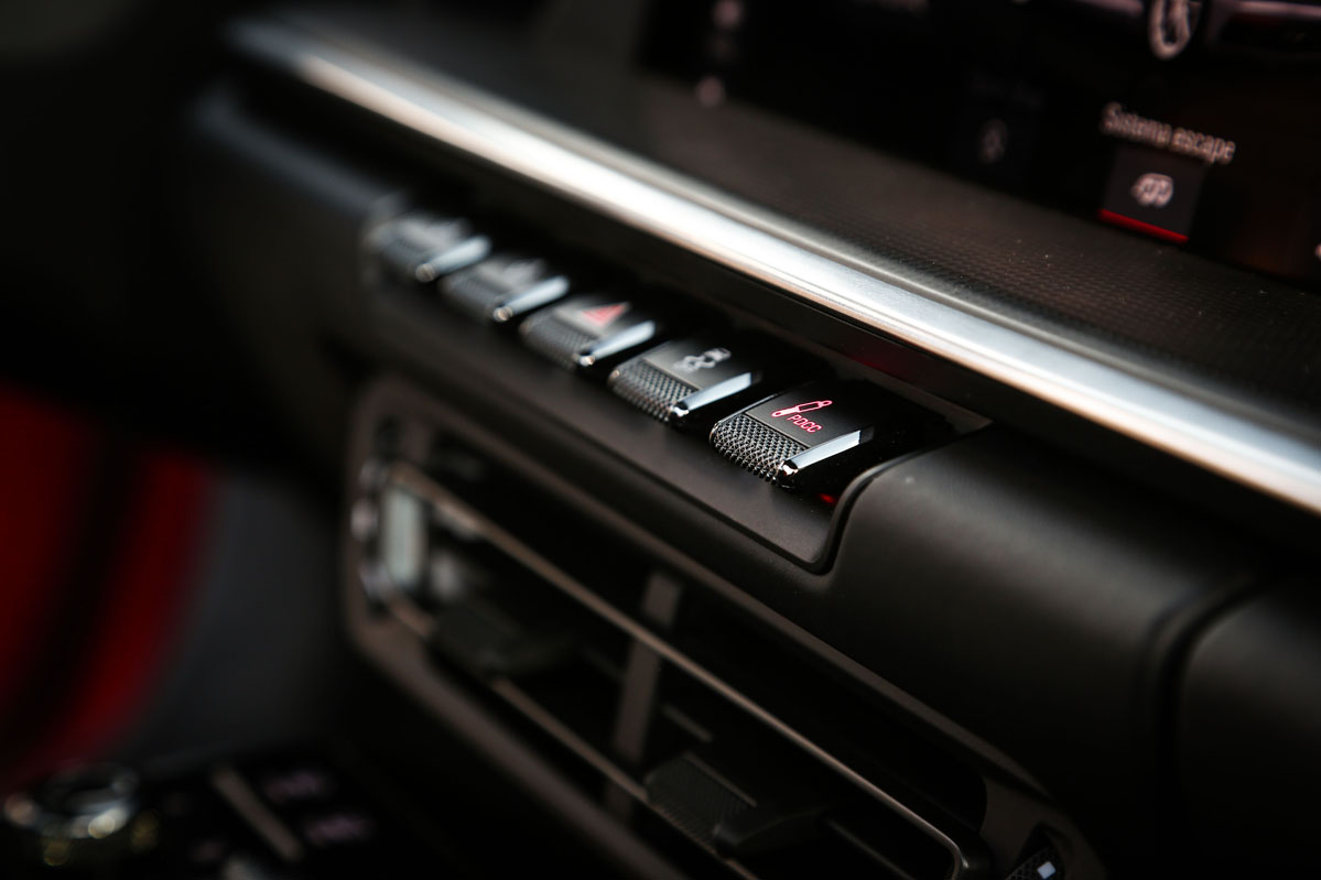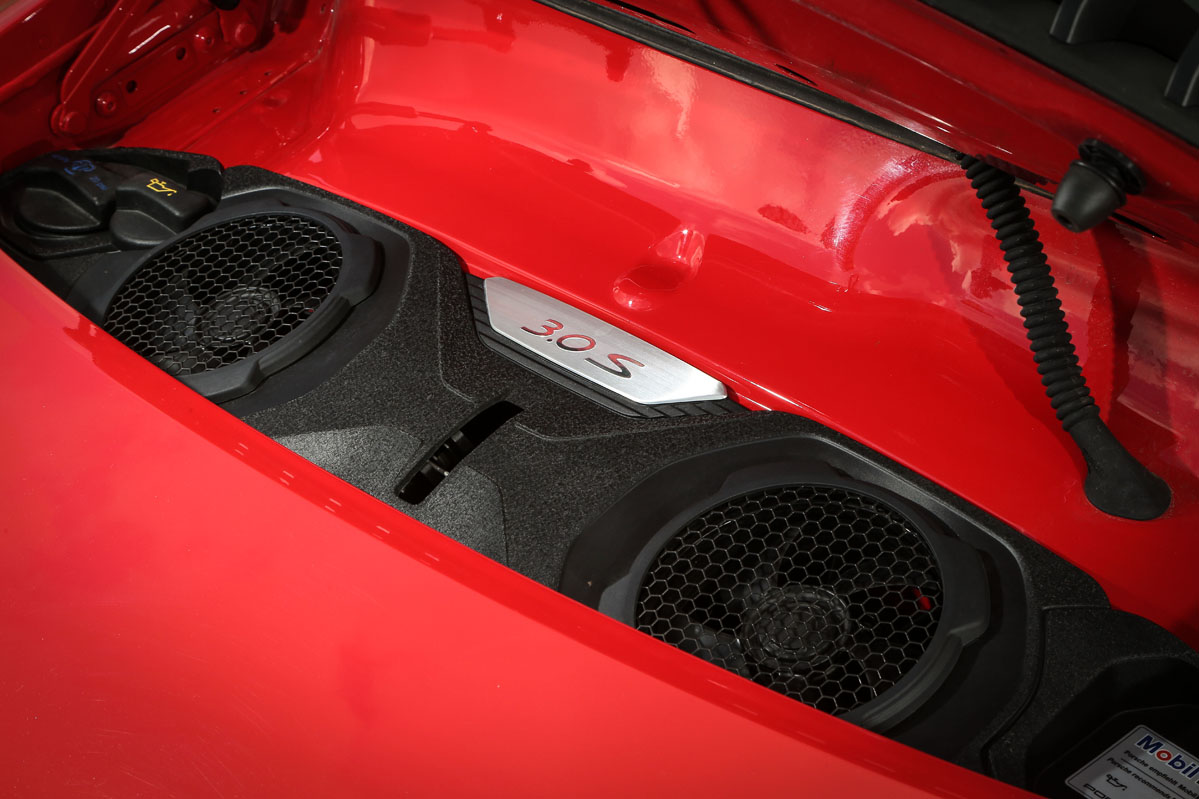 Mis nervios no me permiten esperar más. Cierro la puerta y me abrocho el cinturón, que es de color rojo, otro detalle que deja clara la naturaleza de la criatura. Desde el nuevo conmutador del volante puedo elegir entre cuatro modos: Normal, Sport, Sport Plus y Wet, la novedad. Opto el primero para moverme por ciudad y para confirmar mis sospechas: es un coche apto para utilizar en el día a día, siempre y cuando solo sean dos los pasajeros, porque las plazas traseras son muy pequeñas y el acceso a ellas, engorroso. Además, al no equipar el motor en la parte frontal, el radio de giro es muy pequeño, facilitando los giros cerrados. La suspensión, a pesar de la naturaleza del vehículo, un deportivo de raza, filtra muy bien las irregularidades y sobrepasa sin tortura los badenes de la calzada. El hándicap es que su consumo en ciudad puede superar fácilmente los 17 l/100 km, aunque creo que esa será la menor de las preocupaciones del propietario que se gaste más de 147.000 euros en este vehículo.