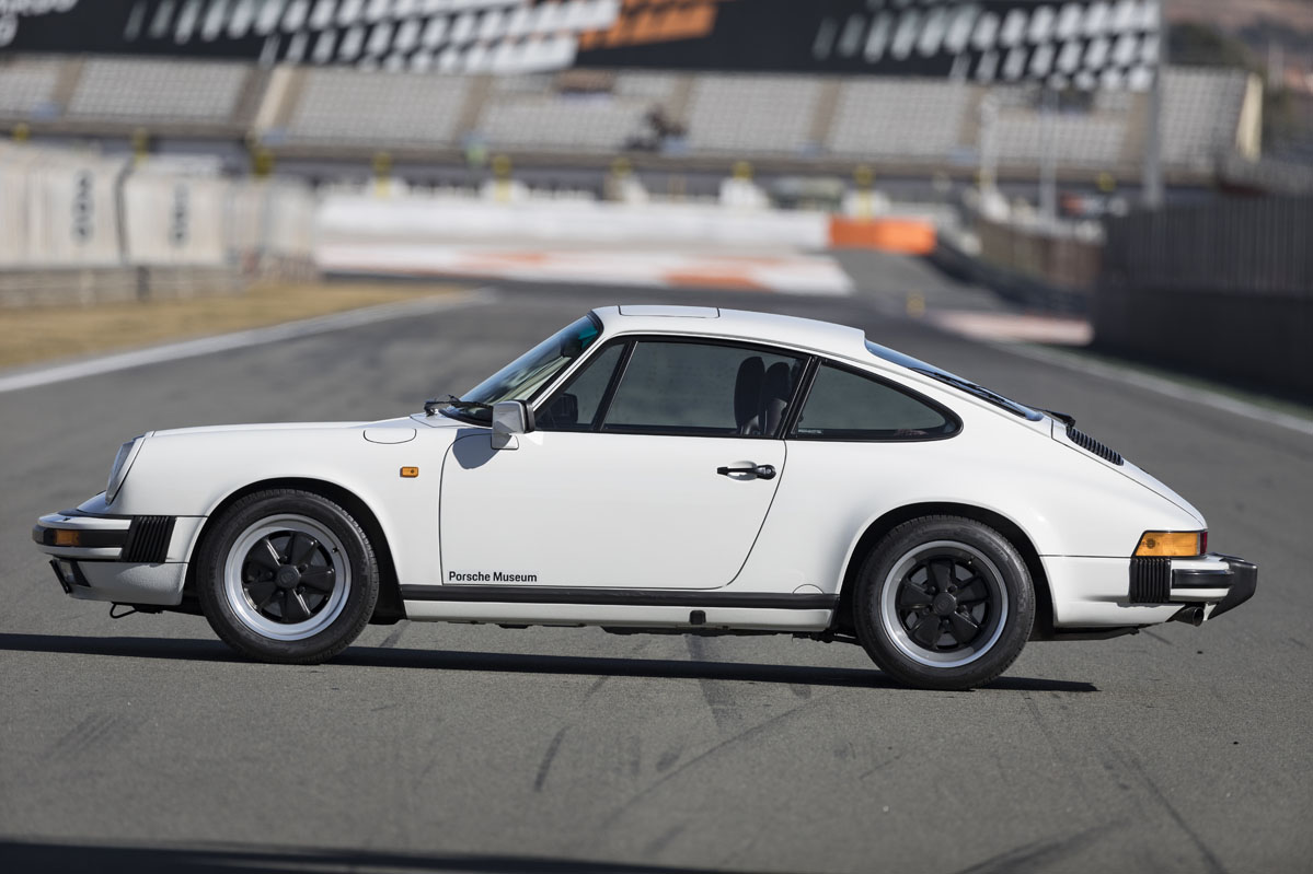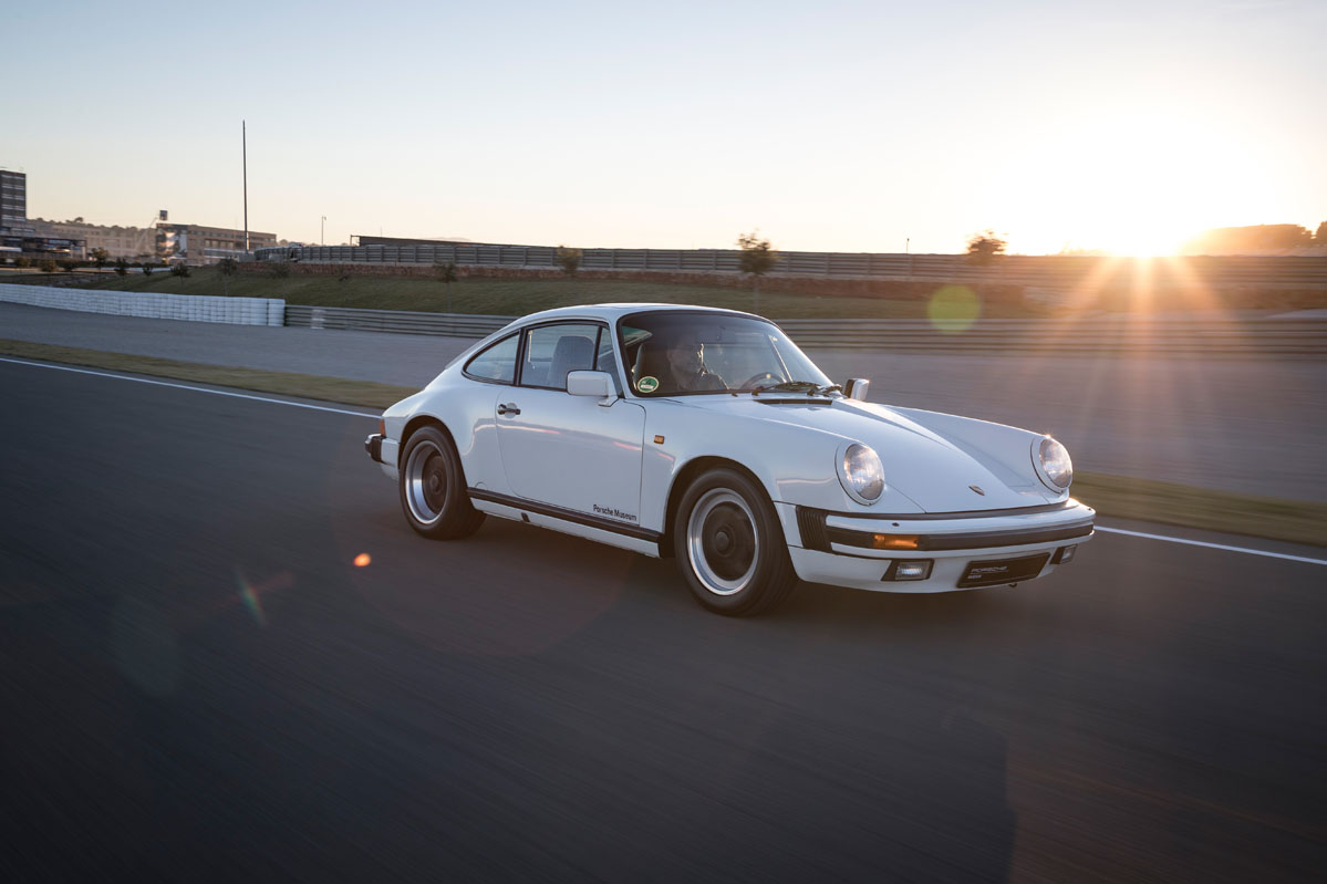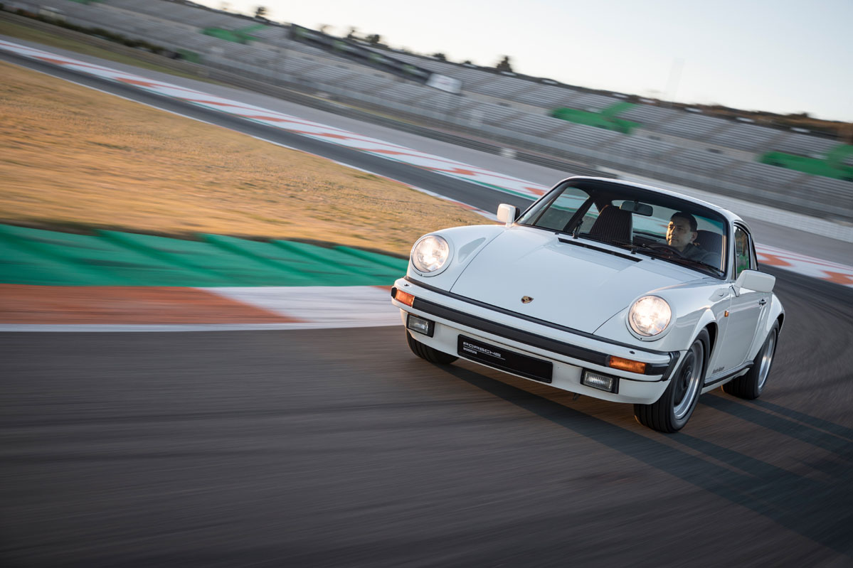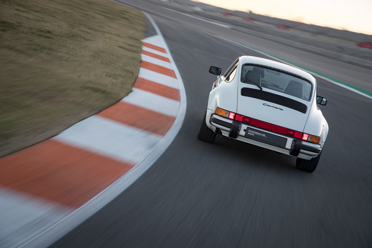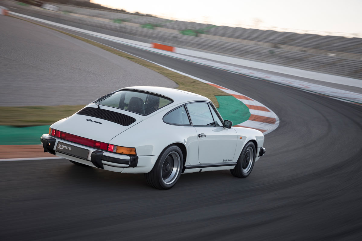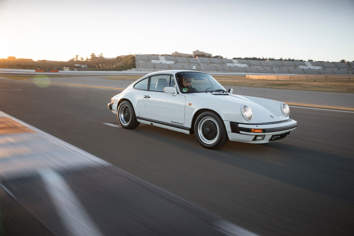 foto trasera dinámica de la prueba del Porsche 911 G Series 3.2