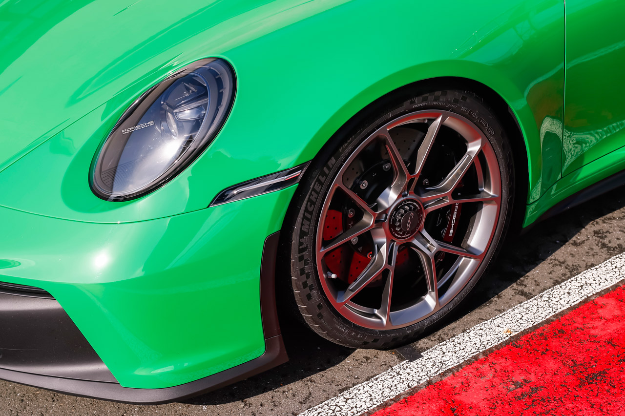 El apartado clave que lo hará más o menos civilizado serán los frenos. En la unidad probada eran los de serie, unos ya de por sí generosos discos de 408 mm, 28 mm más que la generación previa, y que detienen el GT3 sin rechistar una y otra vez. Pero para sentirte más tranquilo recomendamos los carbocerámicos opcionales. Estos aguantarán mejor el calor y la fatiga, aunque el tacto suele ser más directo -los de acero se integran mejor en el uso tranquilo-.
