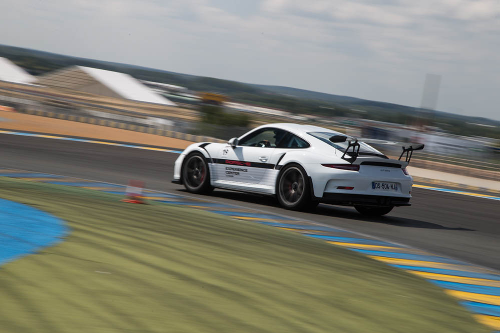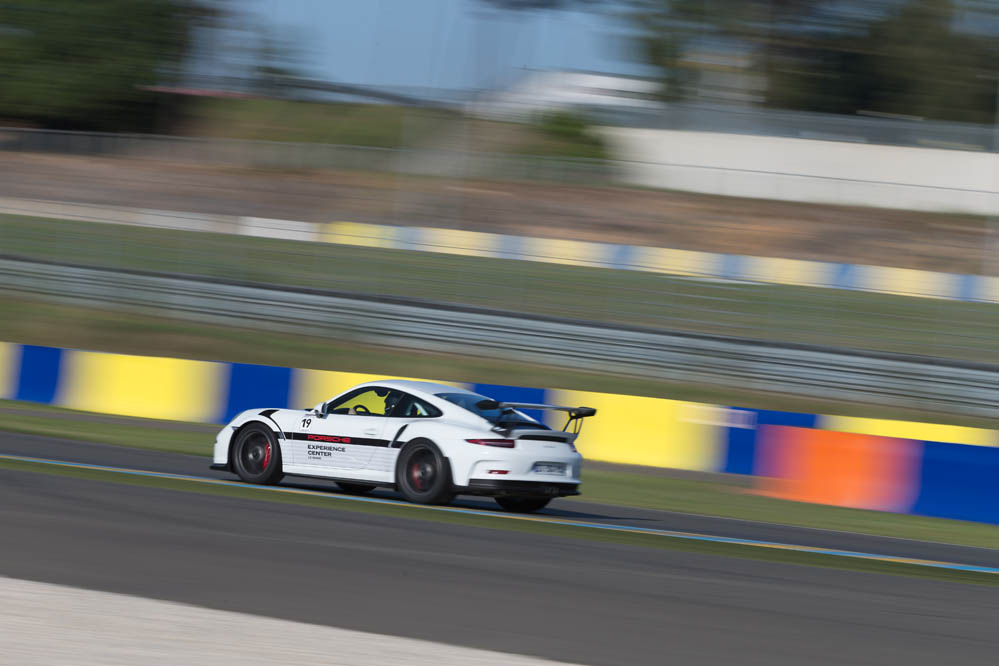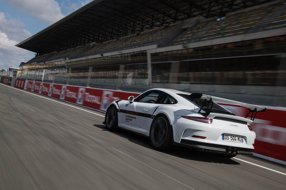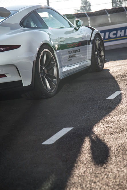 Tras veinte minutos de trayecto que se me hacen eternos, llegamos al trazado francés. Enfrente del Centro Porsche, situado entre la curva Du Pont y el Circuito Alain Prost de karting, se encuentran multitud de Porsche de todos los tipos y colores. Más de 5.000 CV apostados para mi uso y disfrute. Sé que estoy en el sitio adecuado. Pero mi sentido de la vista es muy selectivo y solo enfoca uno, el 991 GT3 RS. Cual aparición, este vehículo, el más bruto de los nueveonce hasta la llegada del 911 GT2 RS 2018, también el más puro, nubla al resto de sus hermanos. Pero es que no es para menos. Su impresionante imagen llama la atención a propios y extraños. Las branquias integradas en los pasos de rueda frontales, las anchas vías y el alerón trasero de enorme tamaño son más atractivos que un cualquier complemento con transparencias de la firma Victoria Secret… o no.