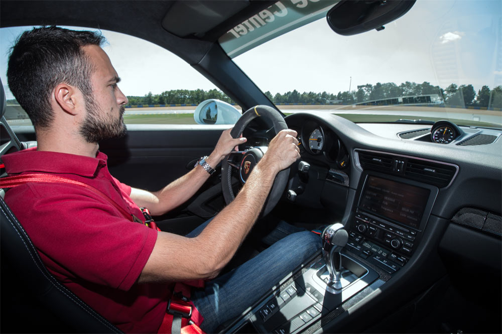 Como decía Calderón de la Barca, “los sueños, sueños son”, pero algunas veces esos deseos se cumplen. Siempre he fantaseado con pilotar un Porsche 917 en el trazado más mítico del mundo: el Circuito de la Sarthe. Steve McQueen tiene gran culpa de ello. Como te comentaba, si anhelas algo con mucha fuerza puede llegar a hacerse realidad. En mi caso ha sido la compañía de Stuttgart, y no la intensidad de mis plegarias, la que me ha dado la oportunidad de poder pisar parte de la pista donde se desarrolla la carrera más legendaria e importante del mundo, las 24 Horas de Le Mans, además de la herramienta perfecta a probar: el Porsche 911 GT3 RS 2015.