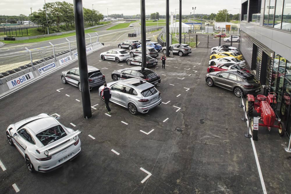 Tras veinte minutos de trayecto que se me hacen eternos, llegamos al trazado francés. Enfrente del Centro Porsche, situado entre la curva Du Pont y el Circuito Alain Prost de karting, se encuentran multitud de Porsche de todos los tipos y colores. Más de 5.000 CV apostados para mi uso y disfrute. Sé que estoy en el sitio adecuado. Pero mi sentido de la vista es muy selectivo y solo enfoca uno, el 991 GT3 RS. Cual aparición, este vehículo, el más bruto de los nueveonce hasta la llegada del 911 GT2 RS 2018, también el más puro, nubla al resto de sus hermanos. Pero es que no es para menos. Su impresionante imagen llama la atención a propios y extraños. Las branquias integradas en los pasos de rueda frontales, las anchas vías y el alerón trasero de enorme tamaño son más atractivos que un cualquier complemento con transparencias de la firma Victoria Secret… o no.