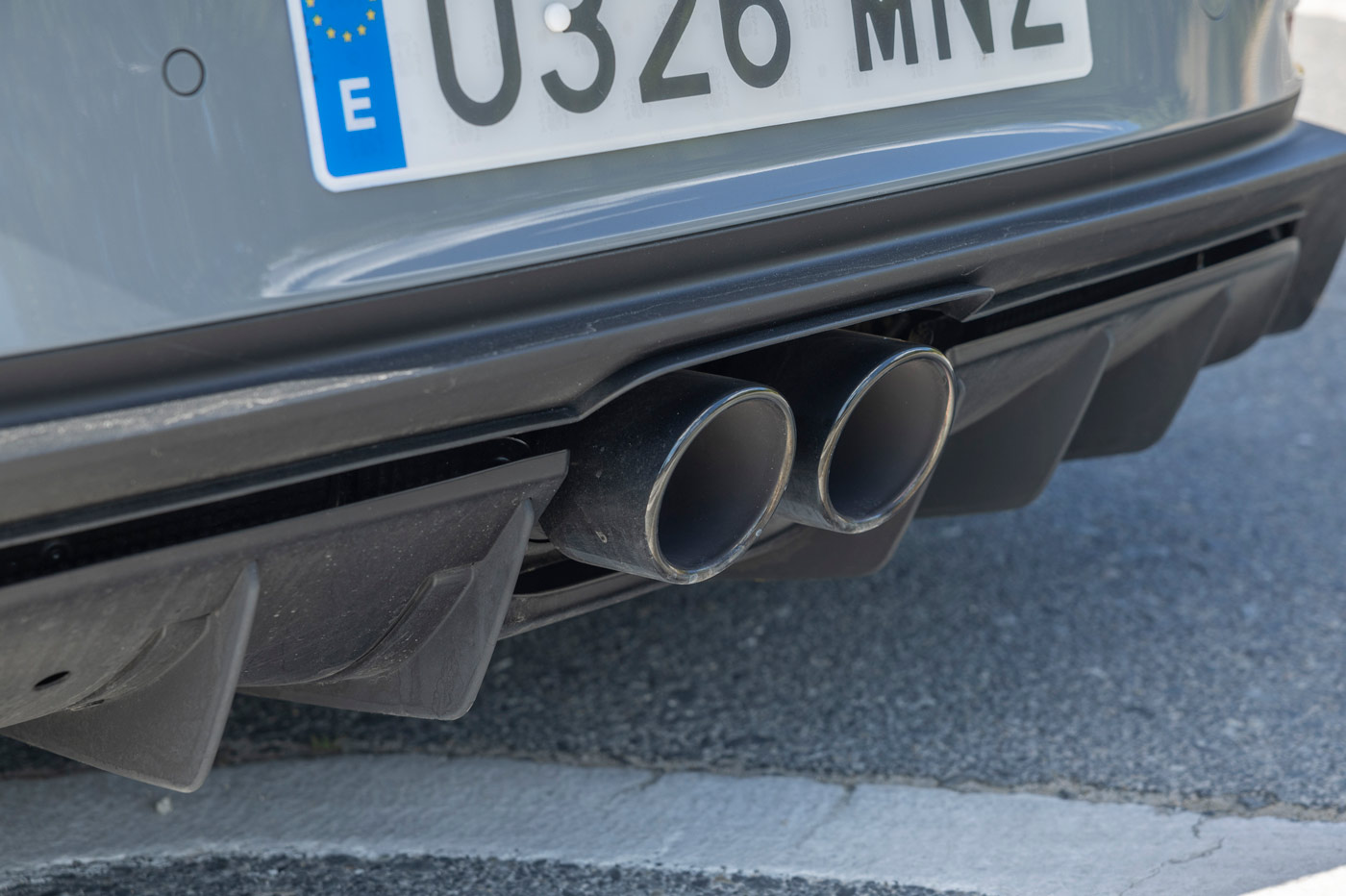 El difusor es el mismo que el del GT3, por lo que consigue un agarre hasta cuatro veces superior al de su predecesor, y los dos tubos que crean esa melodía increíble, también. Estos tienen un tratamiento plateado, pero como en el caso de nuestra unidad de pruebas del Porsche 911 GT3 Touring, van bañados en negro satinado brillante, igual que las molduras de los marcos de las ventanillas, que dejan de lado el color plateado producidas en aluminio anodizado. Asimismo, los faros están oscurecidos.