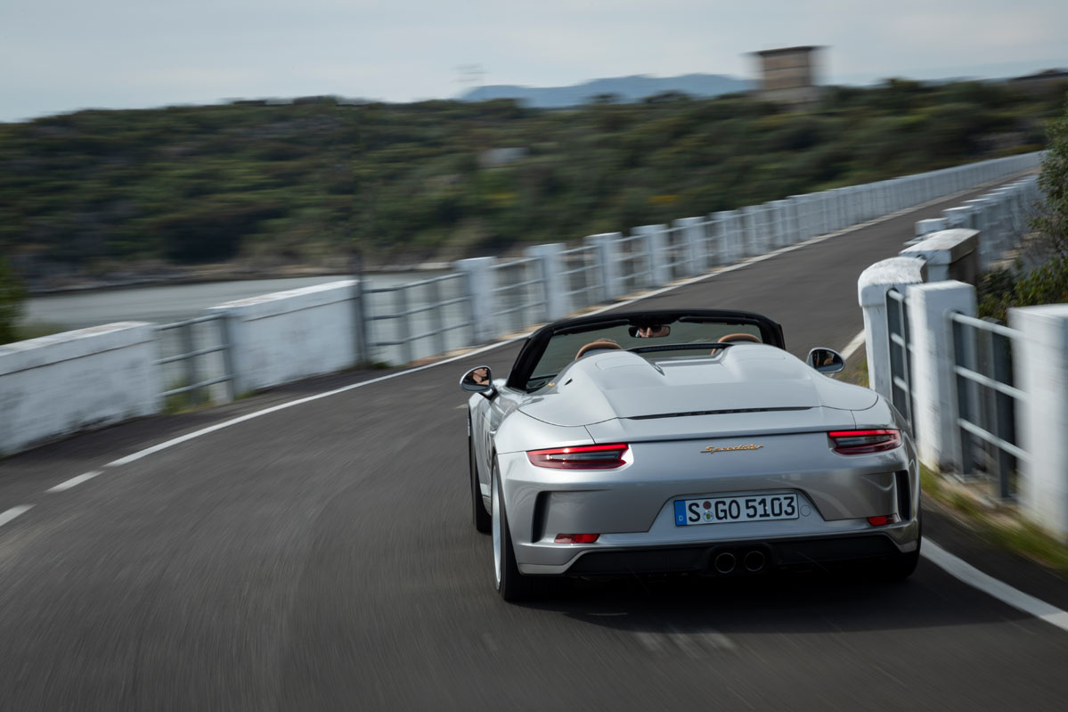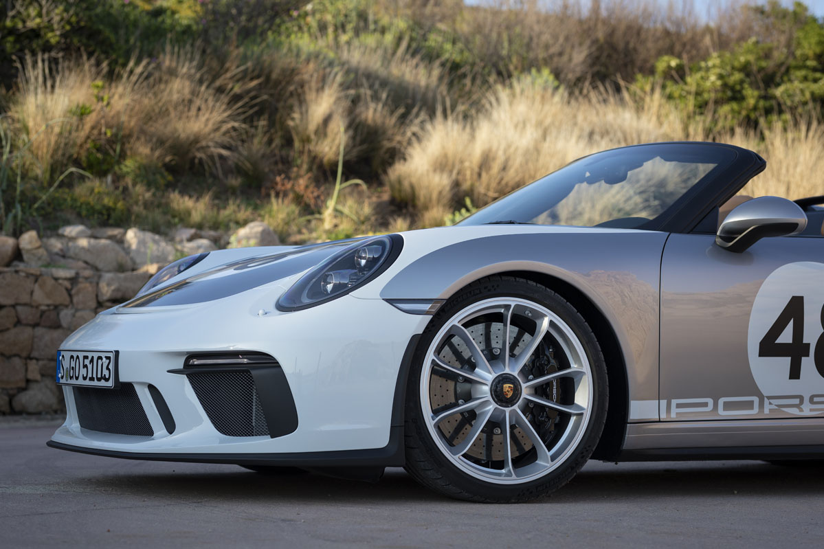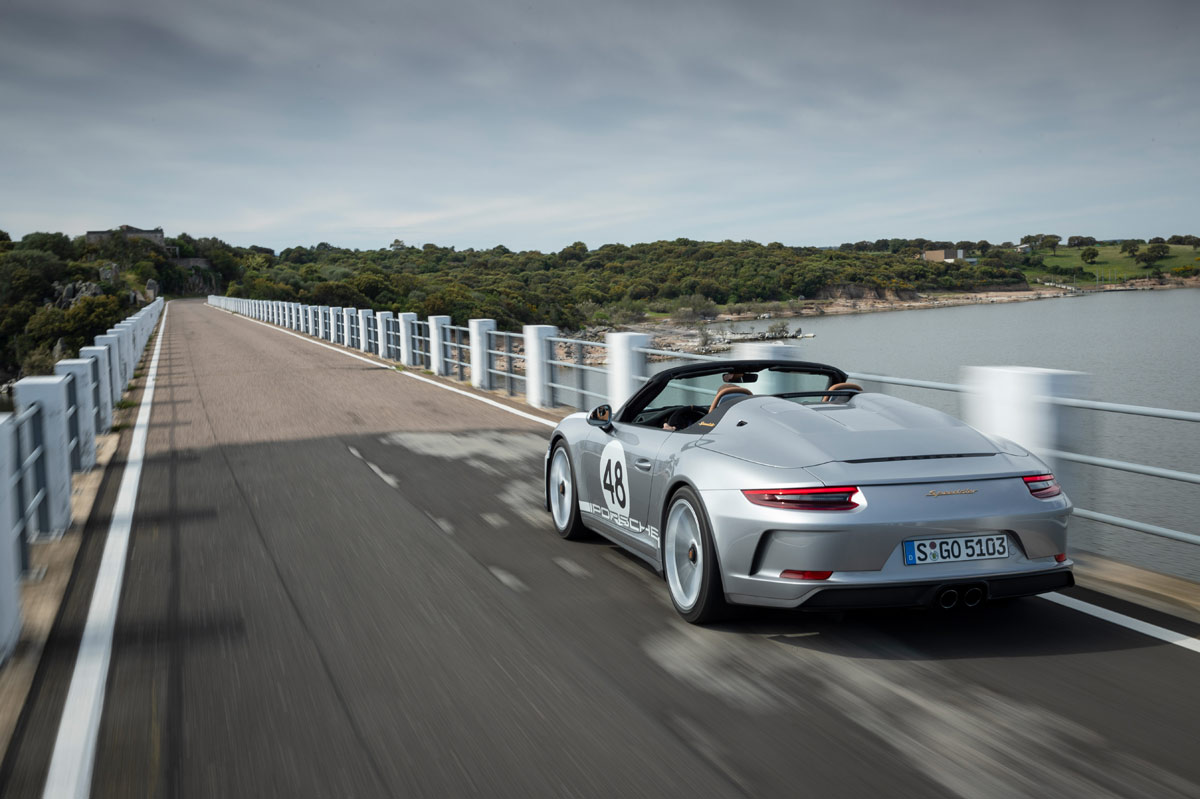 Y es que, el bloque de 4.0 litros responde con una inmediatez a la que ningún motor turboalimentado nos tiene acostumbrados. Al pasar la barrera de las 4.500 revoluciones por minuto, la mecánica bóxer desata toda su rabia e incrementa el régimen de giro a tal ritmo que, antes de darme cuenta, llega al corte de inyección situado a 9.000 vueltas y me veo obligado a poner otro hierro. Por supuesto, la aguja del velocímetro también sube a un ritmo vertiginoso; el Speedster corre muchísimo y conviene no perder la cordura para mantener intactos todos los puntos del carné. Bien es verdad que no es tan rápido como un (prueba) Porsche 911 Turbo S –me sirven como ejemplo el anterior y el nuevo–, pero también es justo decir que resulta mucho más divertido de conducir.