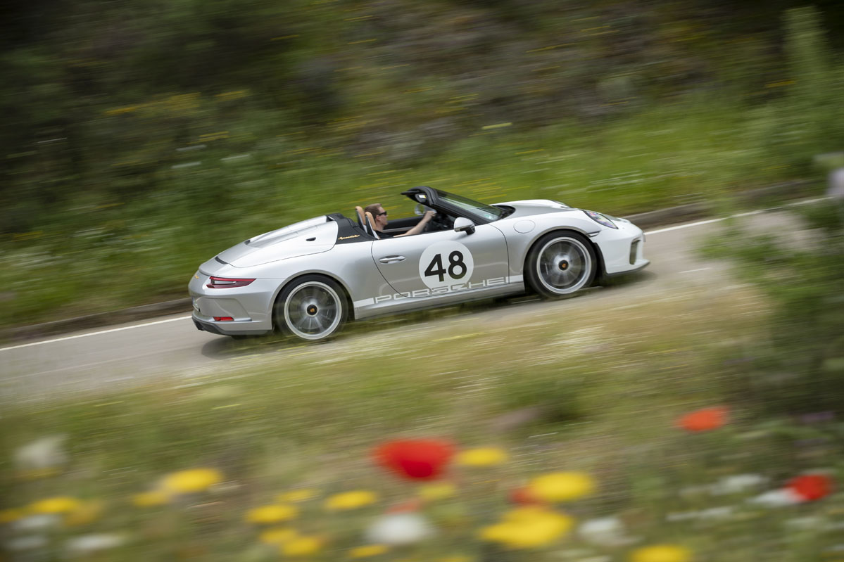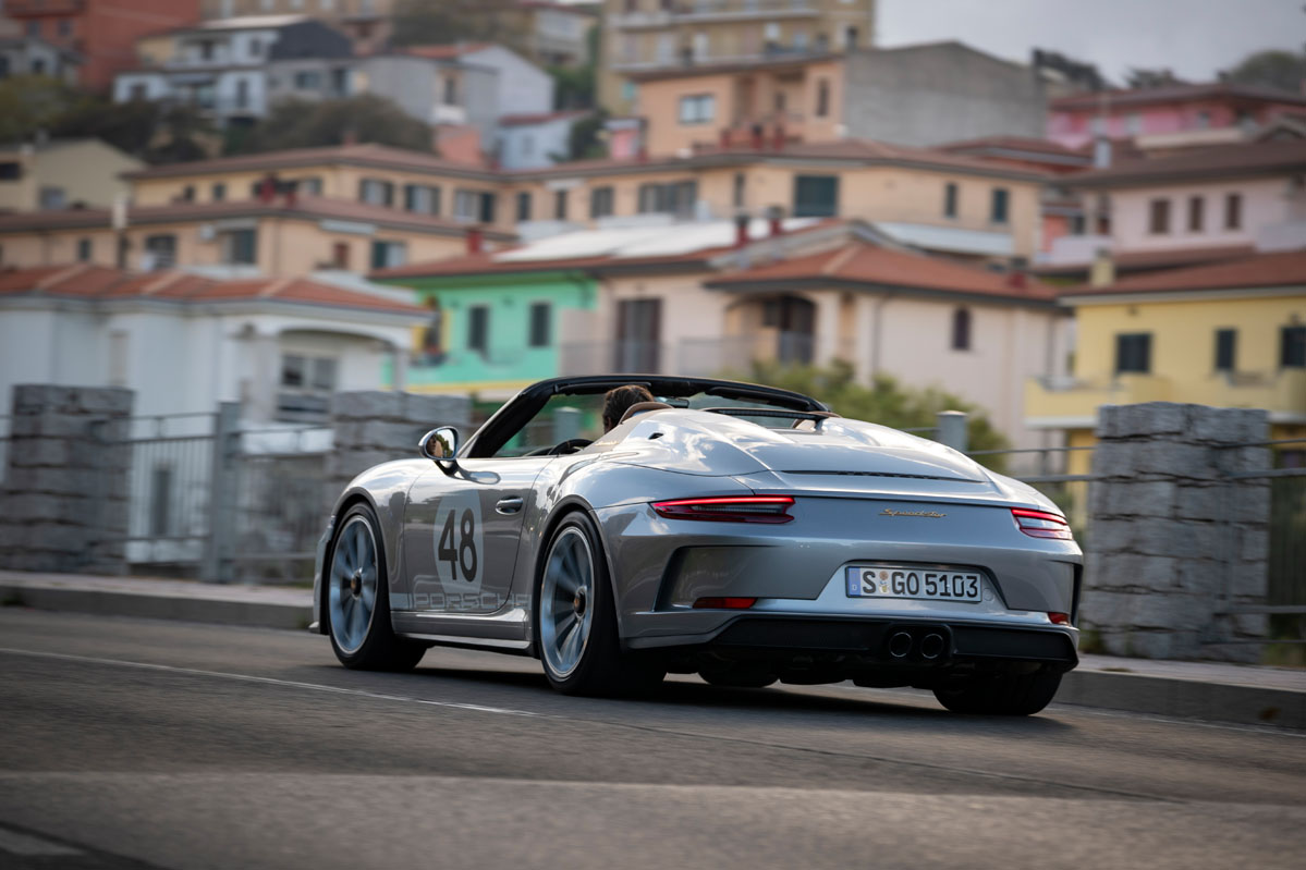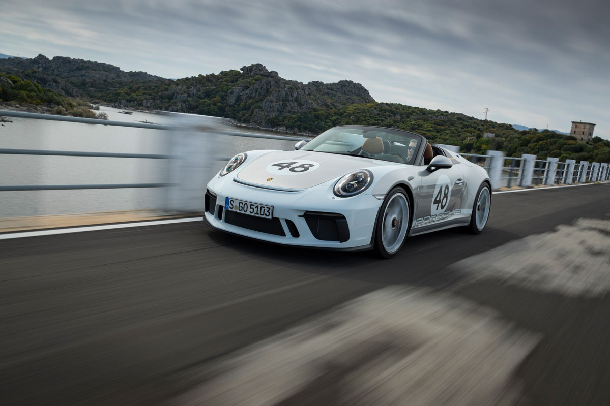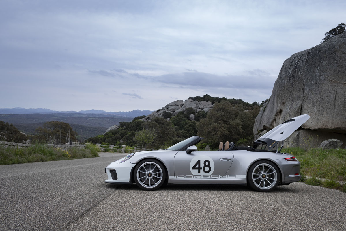 Y es que, el bloque de 4.0 litros responde con una inmediatez a la que ningún motor turboalimentado nos tiene acostumbrados. Al pasar la barrera de las 4.500 revoluciones por minuto, la mecánica bóxer desata toda su rabia e incrementa el régimen de giro a tal ritmo que, antes de darme cuenta, llega al corte de inyección situado a 9.000 vueltas y me veo obligado a poner otro hierro. Por supuesto, la aguja del velocímetro también sube a un ritmo vertiginoso; el Speedster corre muchísimo y conviene no perder la cordura para mantener intactos todos los puntos del carné. Bien es verdad que no es tan rápido como un (prueba) Porsche 911 Turbo S –me sirven como ejemplo el anterior y el nuevo–, pero también es justo decir que resulta mucho más divertido de conducir.