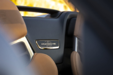 Dentro, los tiradores de las puertas de tela y la fibra de carbono presente en casi todos los rincones me recuerdan que la filosofía de este coche es idéntica a la del primer Speedster. También, como guiño al 356 y gracias al paquete Heritage, la tapicería es de color coñac y adopta el logotipo histórico de la firma de Stuttgart en el volante -de color dorado- y en el reposacabezas; y dos placas: la que conmemorativa el 70 aniversario del primer modelo que se fabricó, situada entre los asientos, y la que se halla en el salpicadero con la palabra Speedster.