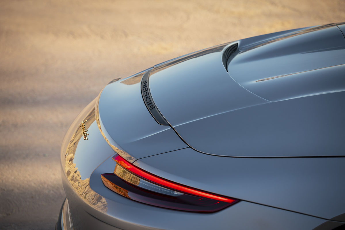 Su diseño tampoco es fruto del azar. Mantiene la característica doble joroba de sus predecesores y una capota de lona que se acciona de forma manual para contener el peso lo máximo posible. El techo de tela se oculta bajo una cubierta fabricada en plástico reforzado con fibra de carbono y el mismo material ha sido empleado en otros componentes de la carrocería, como el capó o los retrovisores. A diferencia de otros 911, el parabrisas está más inclinado y la suspensión está rebajada en 25 milímetros, pero comparte algunos elementos con otras versiones especiales del 911 991, como los paragolpes y las llantas monotuerca forjadas de 20 pulgadas, que proceden del (prueba) 911 GT3.