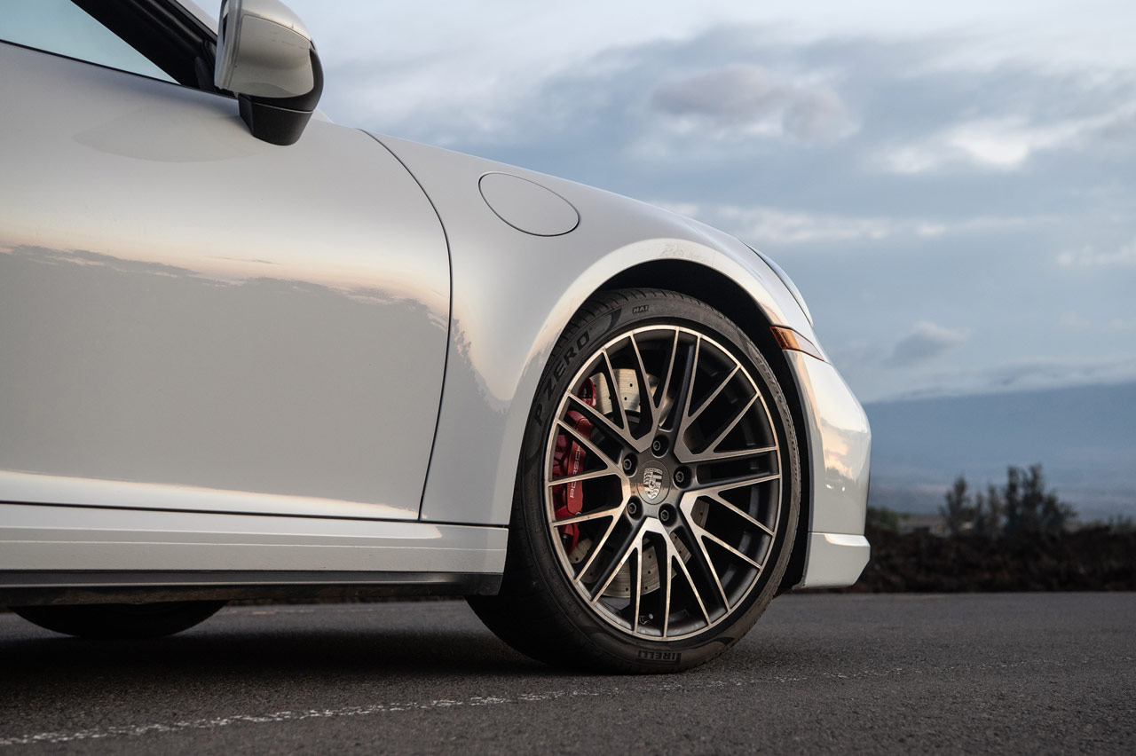 Pues imagina con un motor bóxer 3.8 de 580 CV con doble turbo mientras sus 750 Nm y el trabajo de su magnífica caja de cambios PDK te dejan pegados al asiento a la vez que sus cuatro ruedas de enormes dimensiones, 255/35 R20 97Y las delanteras y 315/30 R21 105Y las traseras, casi son capaces de levantar el asfalto.
