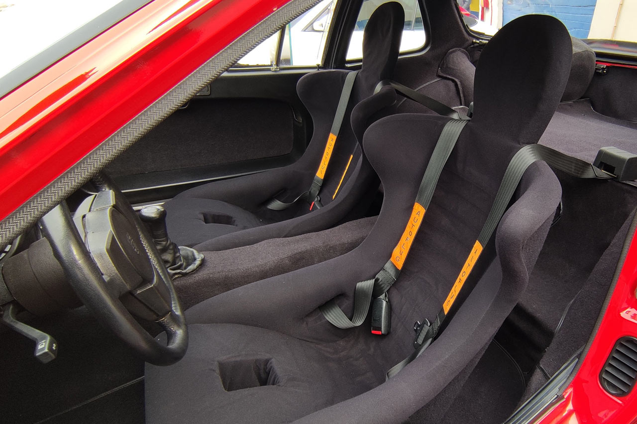 Era un coche claramente orientado a las prestaciones y a ofrecer el mejor comportamento dinámico posible. Eso explica que cuente con una carrocería tan particular, con aletas megaensanchadas, hechas de forma artesanal en fibra vidrio, ventanillas de policarbonato, paneles de puerta aligerados… Todo esto, con la intención de aligerar al máximo el peso y mejorar la aerodinámica.