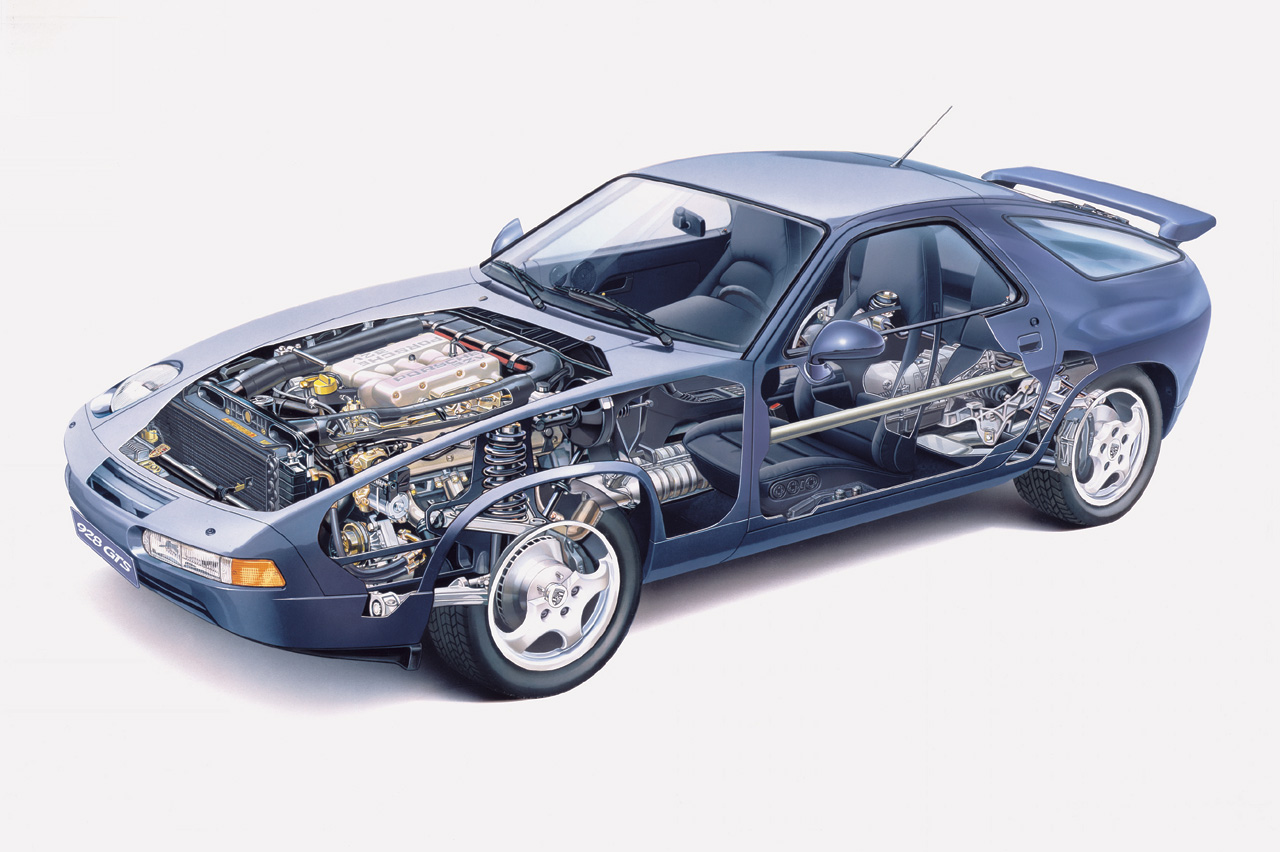 Respecto a las anteriores versiones, lo más llamativo era que el poderoso V8 había incrementado su carrera en 7mm para incrementar la cilindrada de 4,5 a 5,4 litros. Este aumento de capacidad, sumado a un aligeramiento de los elementos móviles del motor permitía llegara a los 350 caballos pero, sobre todo, permitía conseguir una curva de par muy plana que, en su pico, llegaba a unos brutales 500 Nm. Con esto se paliaba uno de los puntos menos favorables del primer 928, cuya respuesta a bajas revoluciones no era especialmente brillante. Ahora el 928 disponía de un motor que, entre 1.000 y 6.000 revoluciones, empujaba como un demonio y parecía no acabarse nunca… Esto quedaba reflejado en unas aceleraciones de cero a 100 kilómetros por hora por debajo de los seis segundos, lo que, para la época, no estaba nada mal.