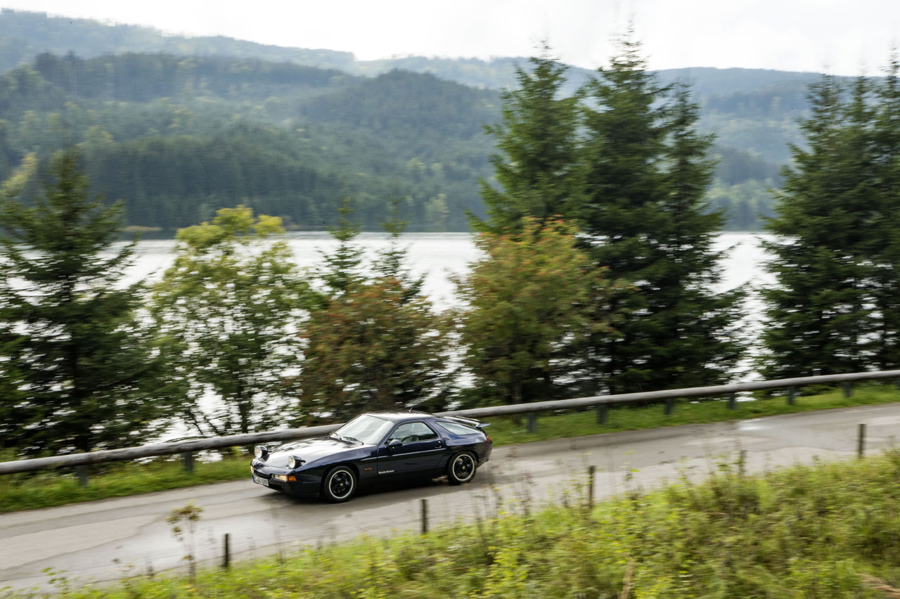 Por tamaño, peso y potencia, el terreno natural del 928GTS son las carreteras rápidas en buen estado, las autopistas y, por supuesto, los circuitos. El noble comportamiento en estas circunstancias nos hace sentir mejores conductores de lo que en realidad somos y las sensaciones son una auténtica gozada sin que, dentro de lo razonable, se corra riesgo alguno. En circuito es donde se puede exprimir el potencial y es donde podemos apreciar las maravillas del eje trasero. Una aproximación a una curva a una velocidad excesiva negociada con un irreflexivo ahuecamiento de acelerador que, en condiciones normales, tendría que acabar en trompo, en el 928 se soluciona con un ligero bandazo y su corrección. Un exceso de gas a la salida de una curva, salvo que insistamos en el error, se digiere sin sobresaltos. En definitiva, un coche que permite un margen de error razonablemente amplio. Es cierto que, hoy en día, con los sistemas electrónicos, los modernos deportivos reducen ese margen de error, pero su comportamiento resulta mucho más intrusivo y, en definitiva, menos placentero. Respecto a las primeras versiones del 928, el motor del GTS resulta todavía mucho más utilizable, se estira más por arriba y derrocha par por los cuatro costados contribuyendo a la mencionada precisión de conducción.