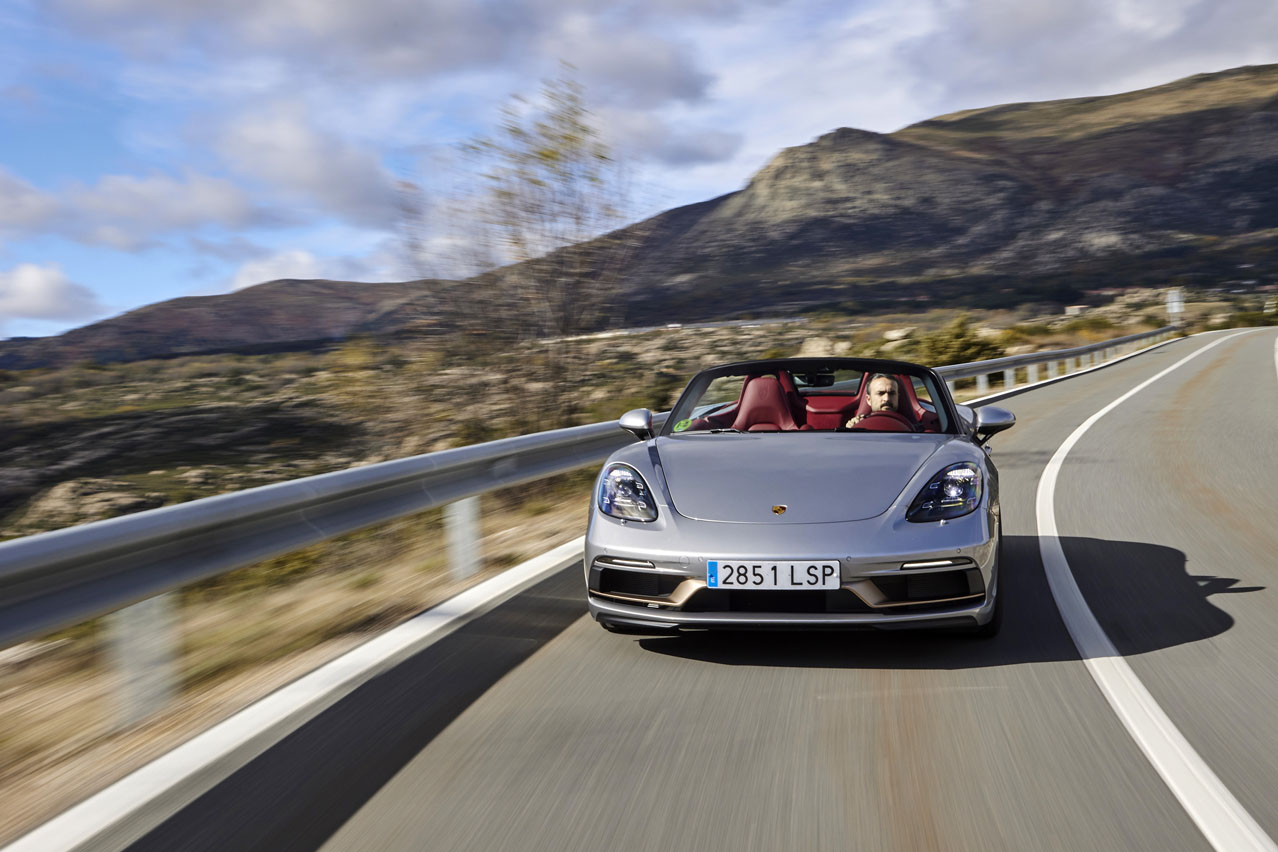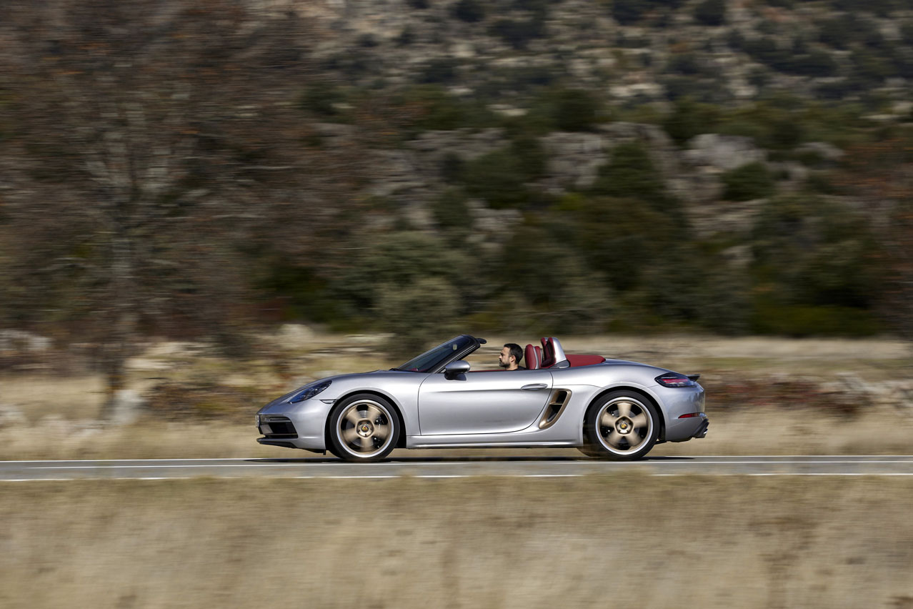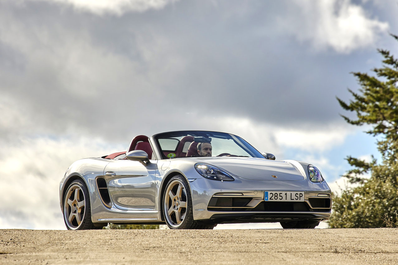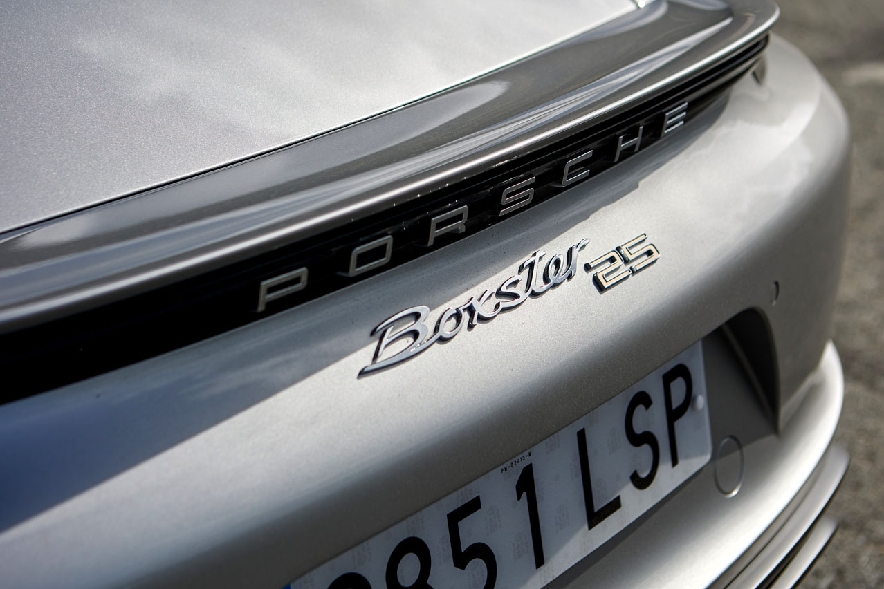 El primer rasgo distintivo del coche de la prueba, el Porsche Boxster 25º Aniversario, se escapa a nuestra mirada al encontrarse en su denominación: prescinde del 718 de la gama actual.