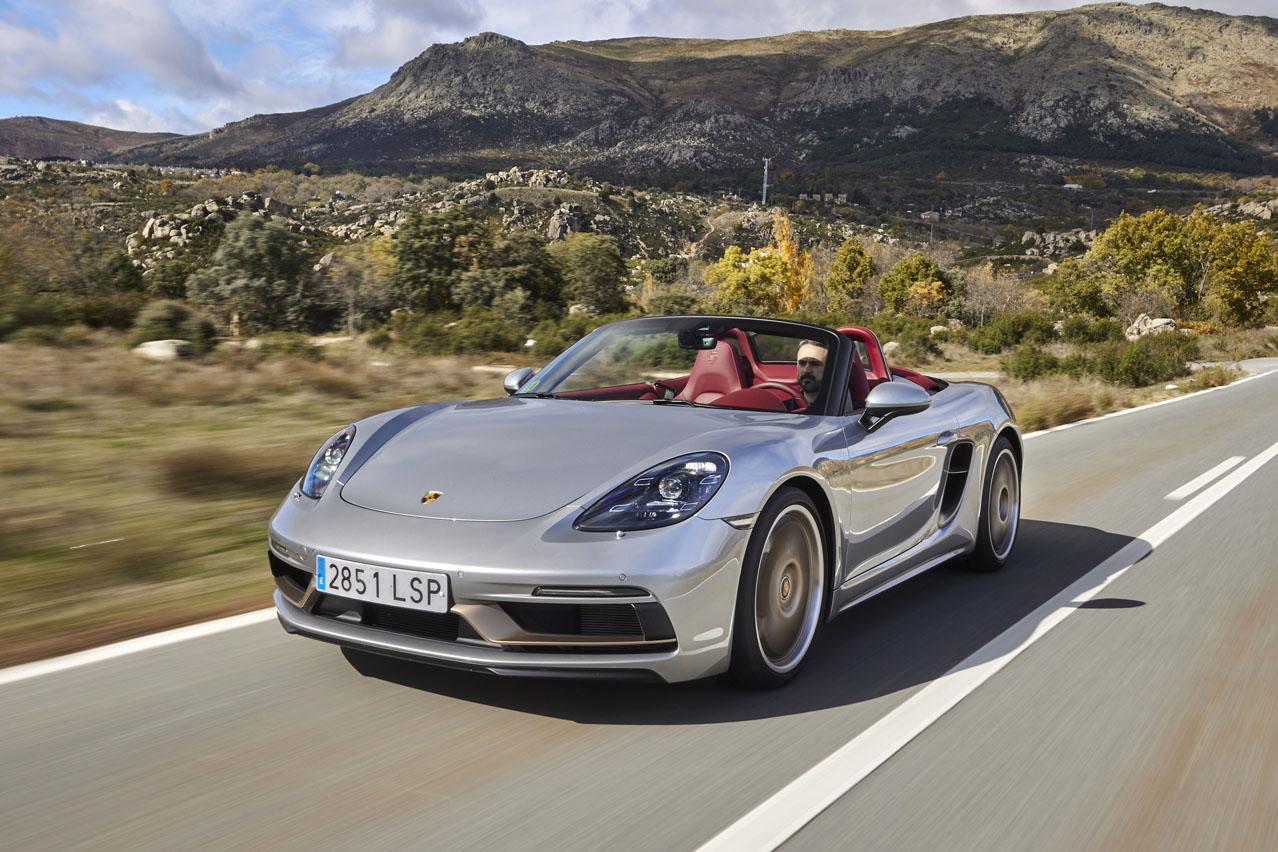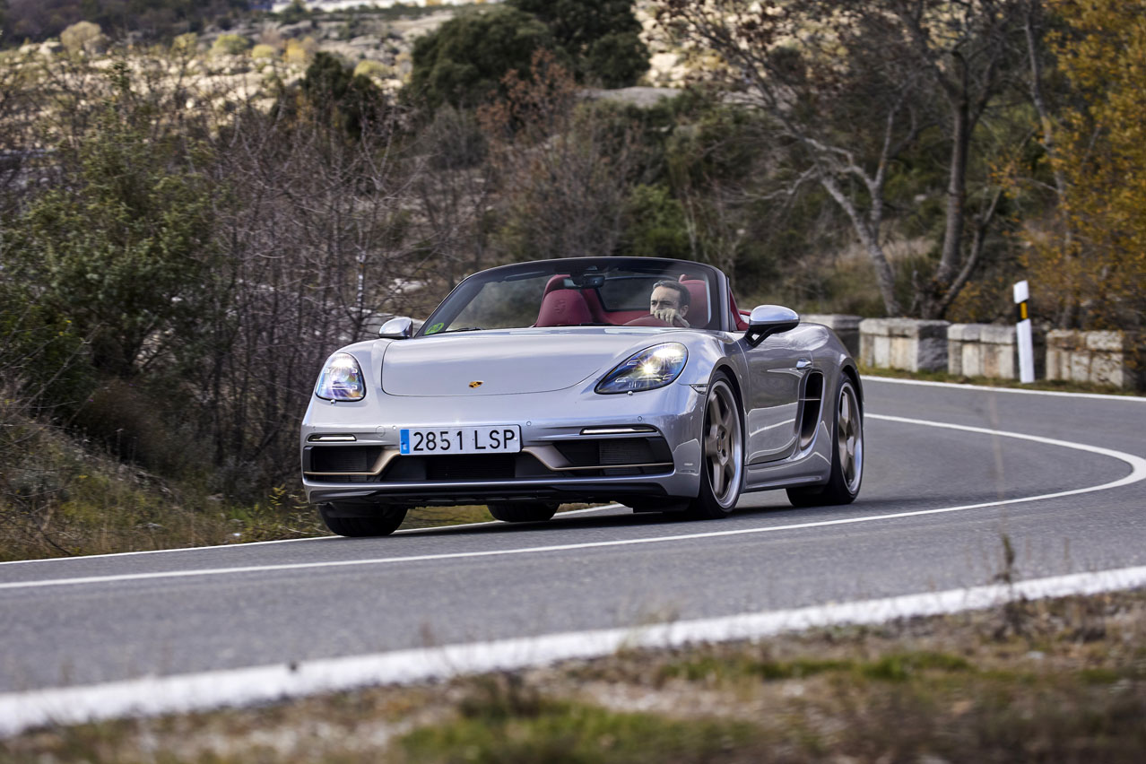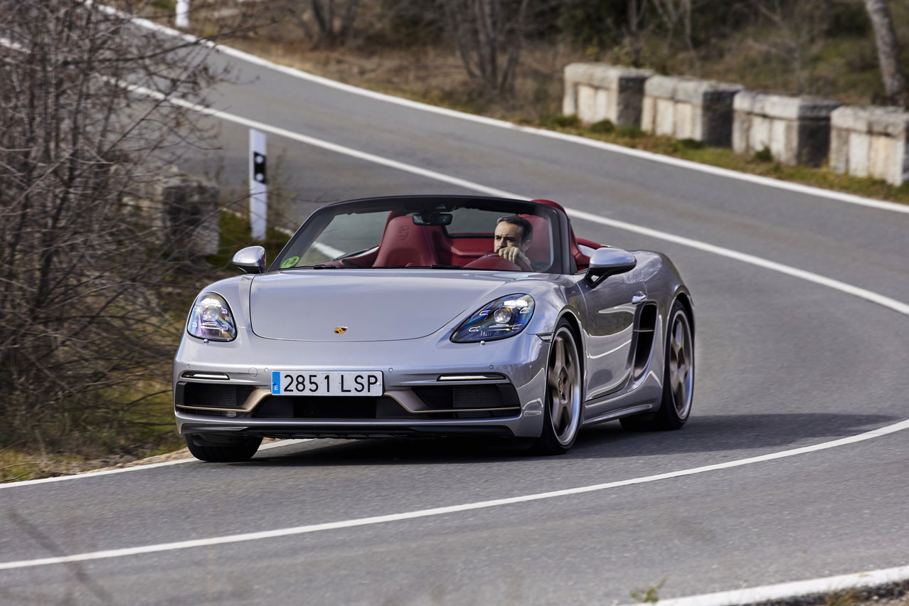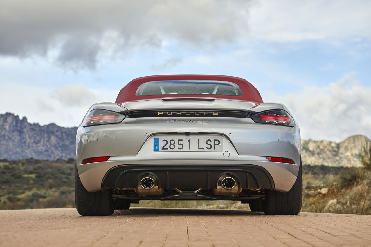 El primer rasgo distintivo del coche de la prueba, el Porsche Boxster 25º Aniversario, se escapa a nuestra mirada al encontrarse en su denominación: prescinde del 718 de la gama actual.
