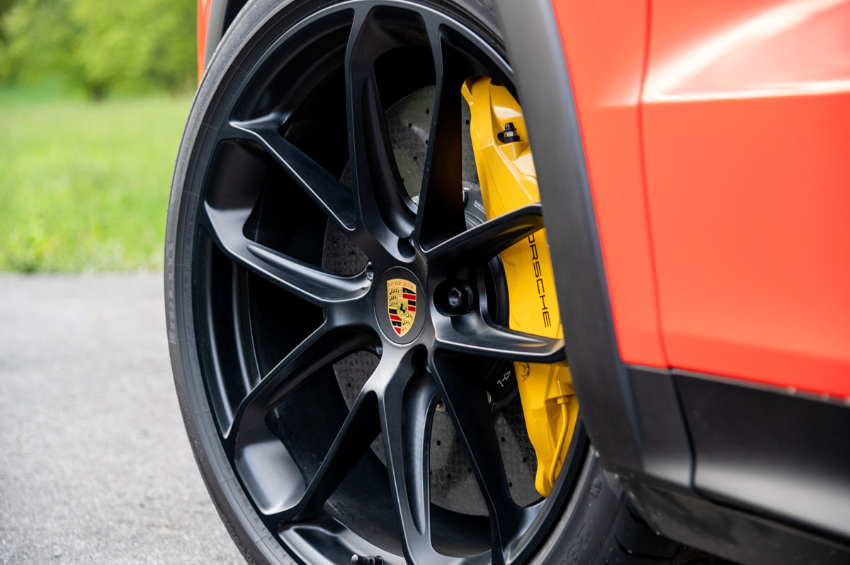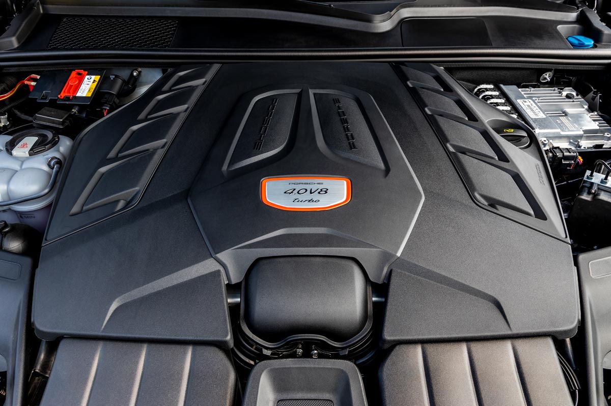 Al igual que con el otro motor, el Turbo ofrece una gran respuesta en curva, parecida a la de un turismo, y eso que la instalación del techo panorámico, con la que se pierde rigidez estructural, ha obligado ha añadir material de refuerzo, sumando unos kilogramos de más, aunque también con ello el centro de gravedad es más bajo. Asimismo, como el Cayenne convencional, equipa un alerón posterior retráctil que a partir de 90 km/h se despliega 135 mm para mantener el eje trasero pegado al asfalto. Por su parte, la tracción total reparte más energía al eje trasero, aunque esta distribución varia cuando se acelera, hasta casi igualarlo. Adereza el conjunto unos discos de freno de enormes dimensiones y unos neumáticos con una anchura de 285 delante y 315 detrás.