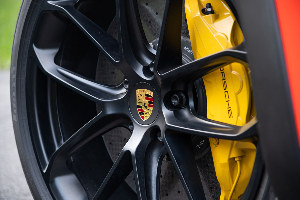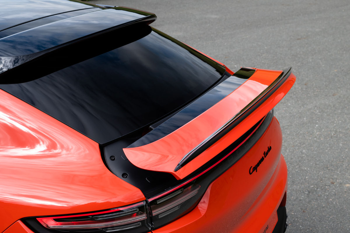 Marca la diferencia con sus enormes llantas GT de 22 pulgadas, sí, 22, que exhiben un diseño muy atractivo. Y grandes tienen que ser como para proteger unos discos de freno y unas pinzas de diez pistones -las delanteras- de medidas rara vez vistas por estos ojos durante mis años de profesión. Tampoco puedo pasar por alto la matrícula, que ahora va alojada en una posición más baja, ganando en presencia; ni los múltiples elementos realizados en fibra de carbono o los otros bañados en color negro piano, señal de que la unidad de pruebas del Porsche Cayenne Coupé equipa uno de los tres paquetes deportivos de construcción ligera que existen.