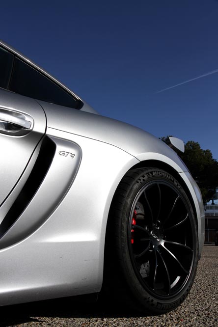El deportivo que descansa enfrente de mí, quieto, pasará a la Historia, eso lo puedo afirmar sin atisbo de duda. A pesar de que su motor bóxer de 3.8 litros y 385 CV está apagado, el vehículo en silencio impresiona. Su imagen es impactante, adictiva, sorprendente. Todo ha sido diseñado al milímetro para ofrecer el mejor rendimiento aerodinámico y una refrigeración óptima. Pero, además de tener esta parte funcional, también consigue que este Cayman sea el centro de todas las miradas. Unos paragolpes redimensionados, el frontal con tres grandes tomas de aire y un spliter; un enorme alerón trasero fijo con soportes de aluminio capaz de producir 100 kilogramos de carga en el eje trasero, el 'Gurney Flap', el spoiler integrado en la carrocería; unas tomas de aire laterales y unas llantas de 20 pulgadas en color negro son los culpables de embelesar a cualquier mortal que se cruce con él.