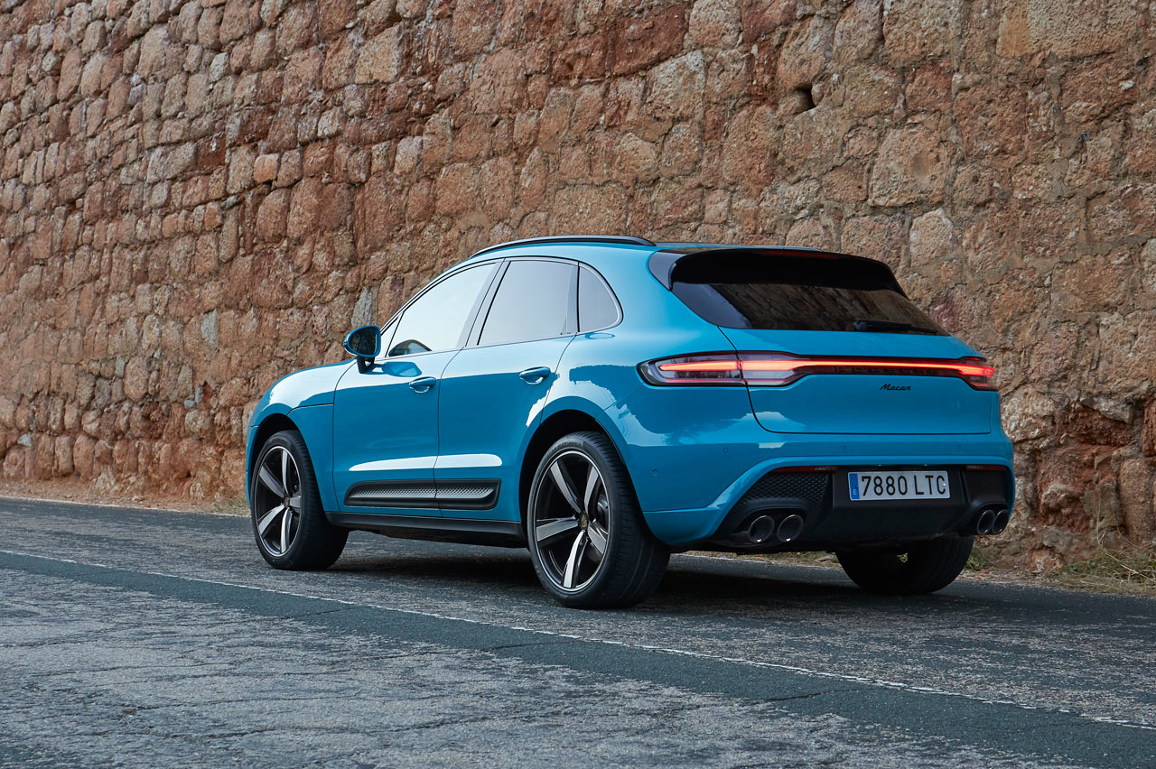 En su caso, la parrilla, que ahora es más grande y ancha, lleva unos aditamentos con forma de aleta de tiburón pintadas en el mismo color de la carrocería, mientras que el labio inferior es negro. Asimismo, en esta variante el escape es trapezoidal, aunque en opción es posible montar el circular doble, como la unidad de pruebas. No podía faltar las molduras laterales en efecto 3D, un 'sello Macan' desde la primera generación.