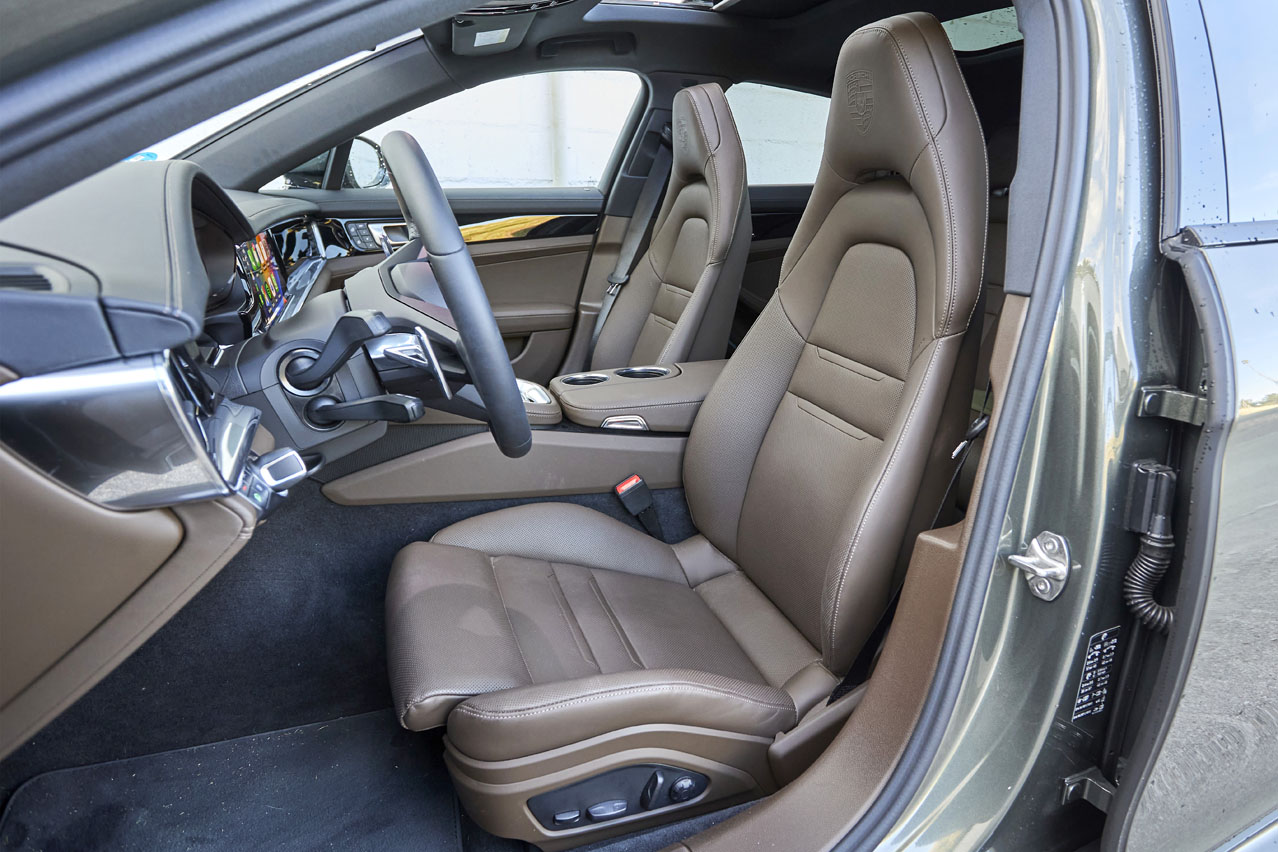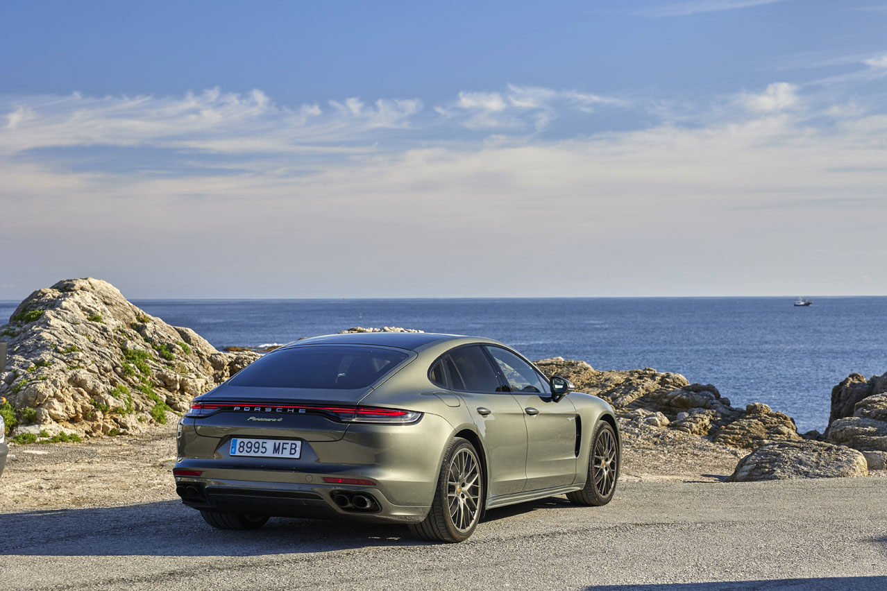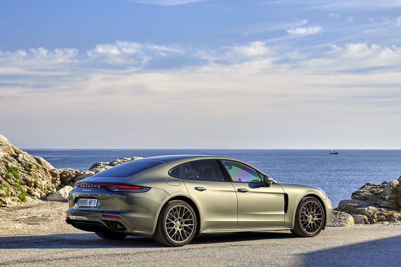 Esta versión trae con el precio base, que no es bajo, 132.863 euros, techo panorámico, retrovisores exteriores antideslumbramiento, asistente de aparcamiento con cámara de marcha atrás, faros matriciales LED con Porsche Dynamic Light System Plus y la maravillosa suspensión neumática adaptativa con Porsche Active Suspension Management (PASM). Y en el apartado eléctrico, cargador de corriente alterna (CA) integrado con una potencia de carga de 7,2 kW.