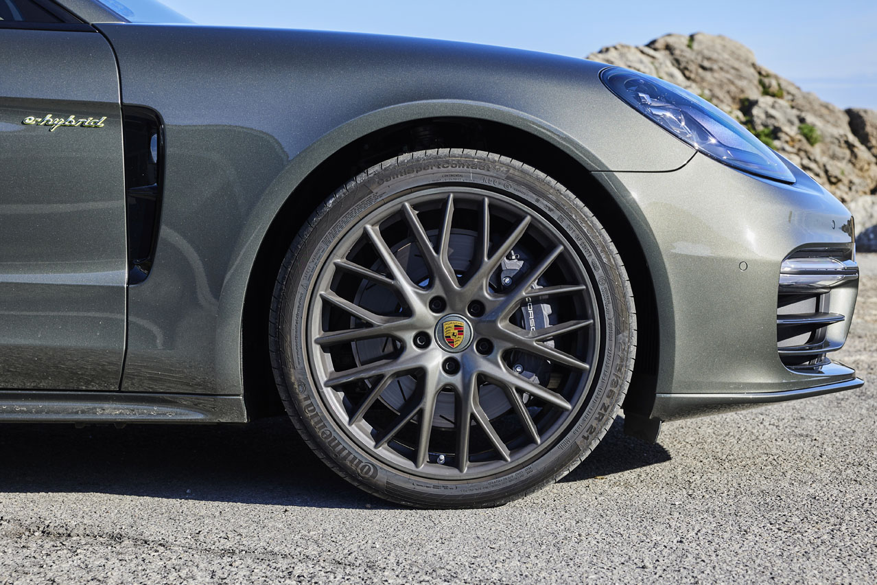Ahora lo tengo, de nuevo, entre mis manos. Toda una semana para probarlo por mis carreteras favoritas. Pero antes de meterme en harina, primero déjame que te informe de las diferencias estéticas que adopta este Platinum Edition. Y es que por algo recibe esa denominación... Las llantas Exclusive Design Sport de 21 pulgadas, los logotipos 'Panamera' y 'e-hybrid' y las salidas de refrigeración de los laterales van bañados en color platino.