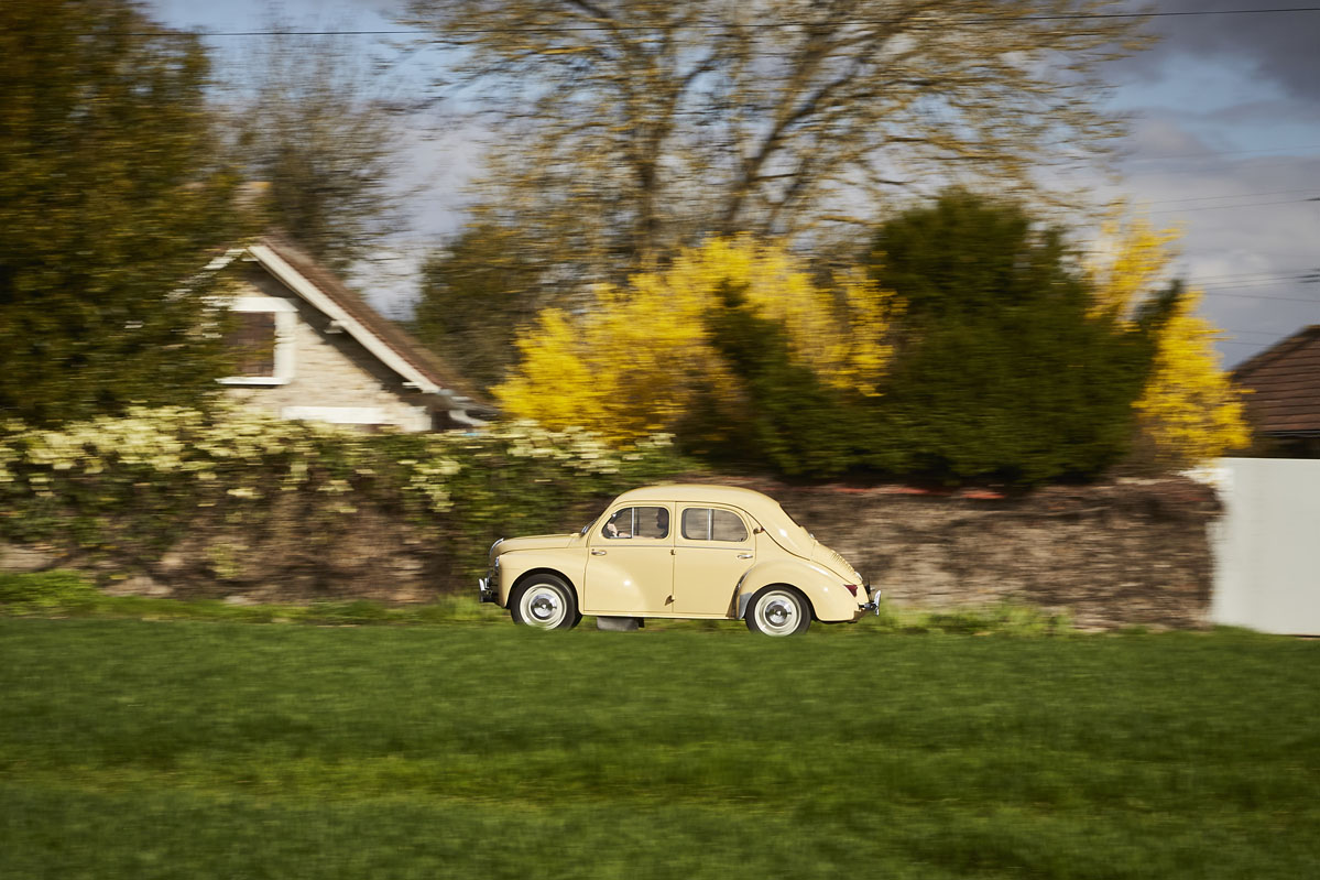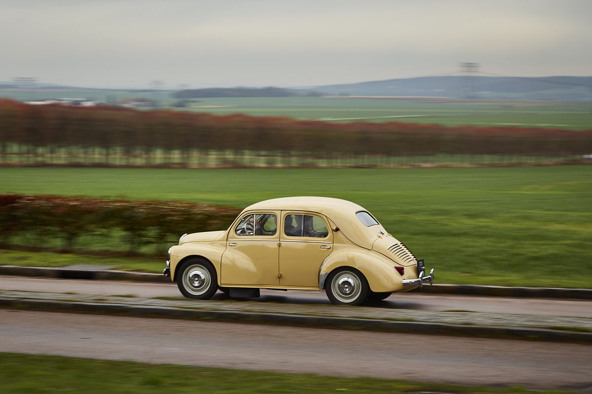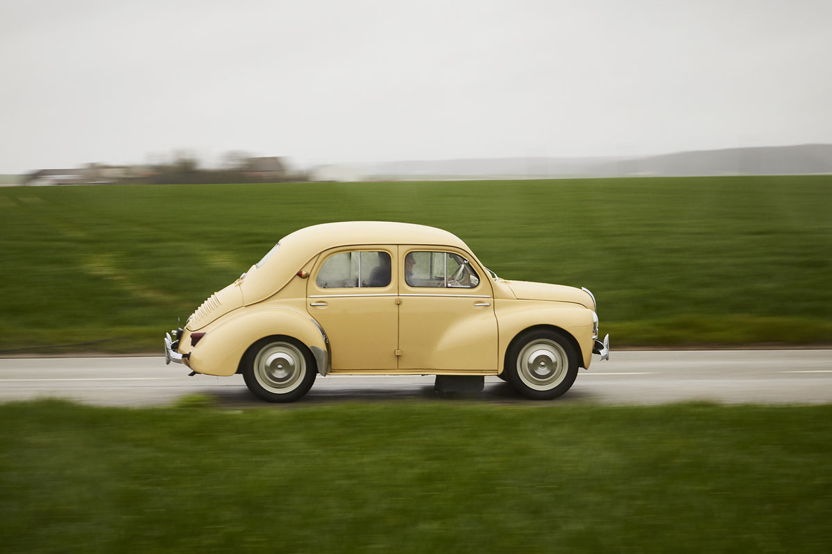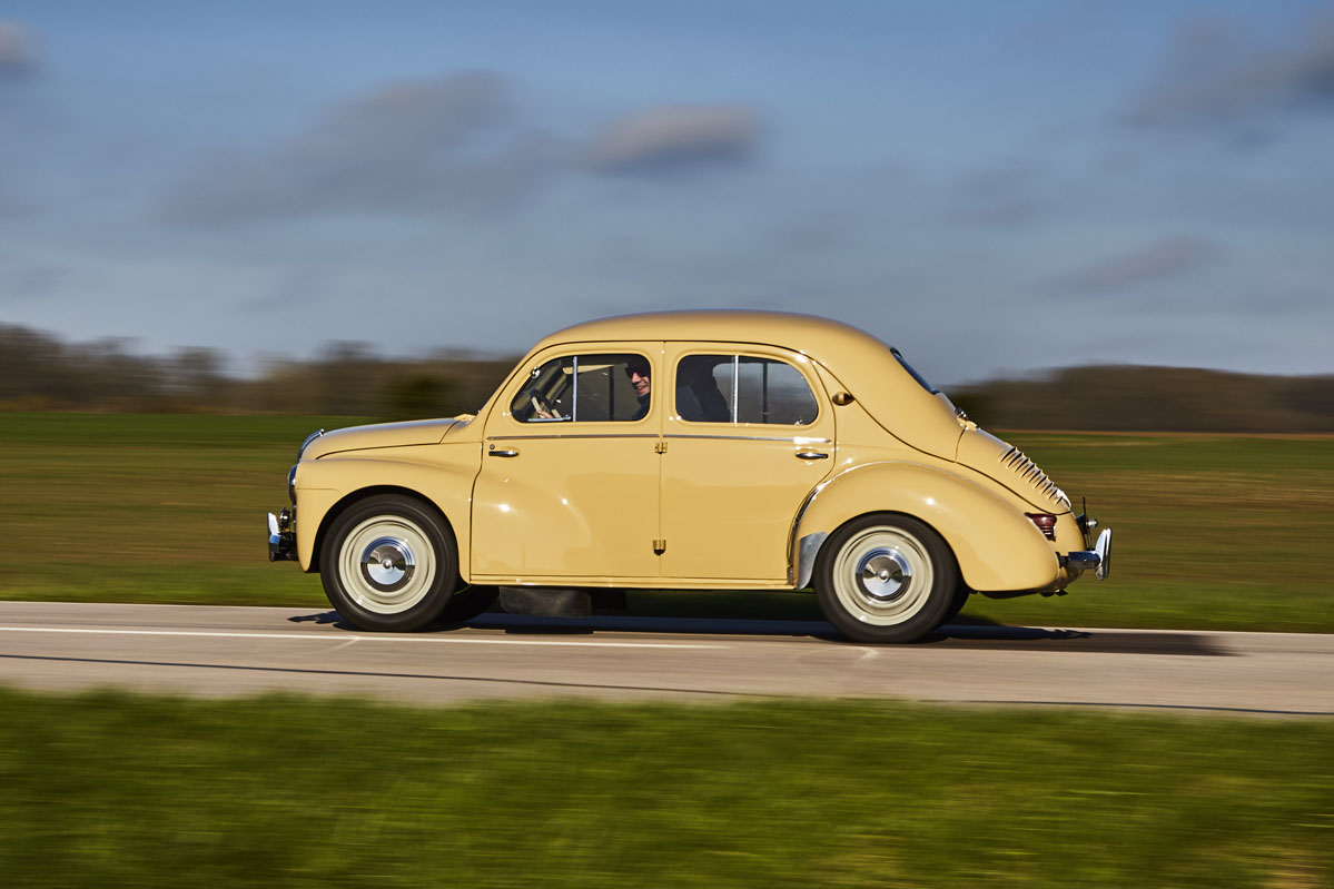 Los de Renault no se rompieron mucho la cabeza poniéndole nombre a su nuevo modelo. Simplemente lo bautizaron haciendo referencia a su potencia fiscal, 4CV, resultante de aplicar la fórmula empleada por las autoridades francesas sobre la cilindrada de su mecánica de 4 cilindros en línea de 747 cm3 colocado por detrás del eje trasero longitudinalmente.