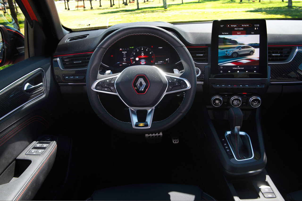Esta unidad híbrida (HEV) de 145 CV parte de 27.620 euros en el acabado Zen, pero nuestra unidad de pruebas salta al tope de gama, el R.S.Line (desde 32.009 euros) y gana en aspecto deportivo, gracias a sus llantas de aleación de 18”, distintos apéndices aerodinámicos delante y a los lados, un pequeño spoiler trasero y una acertada decoración interior en tablero de instrumentos, volante, puertas y asientos que le queda realmente bien. Además, viene asimismo con calefacción en las plazas delanteras y cargador por inducción.