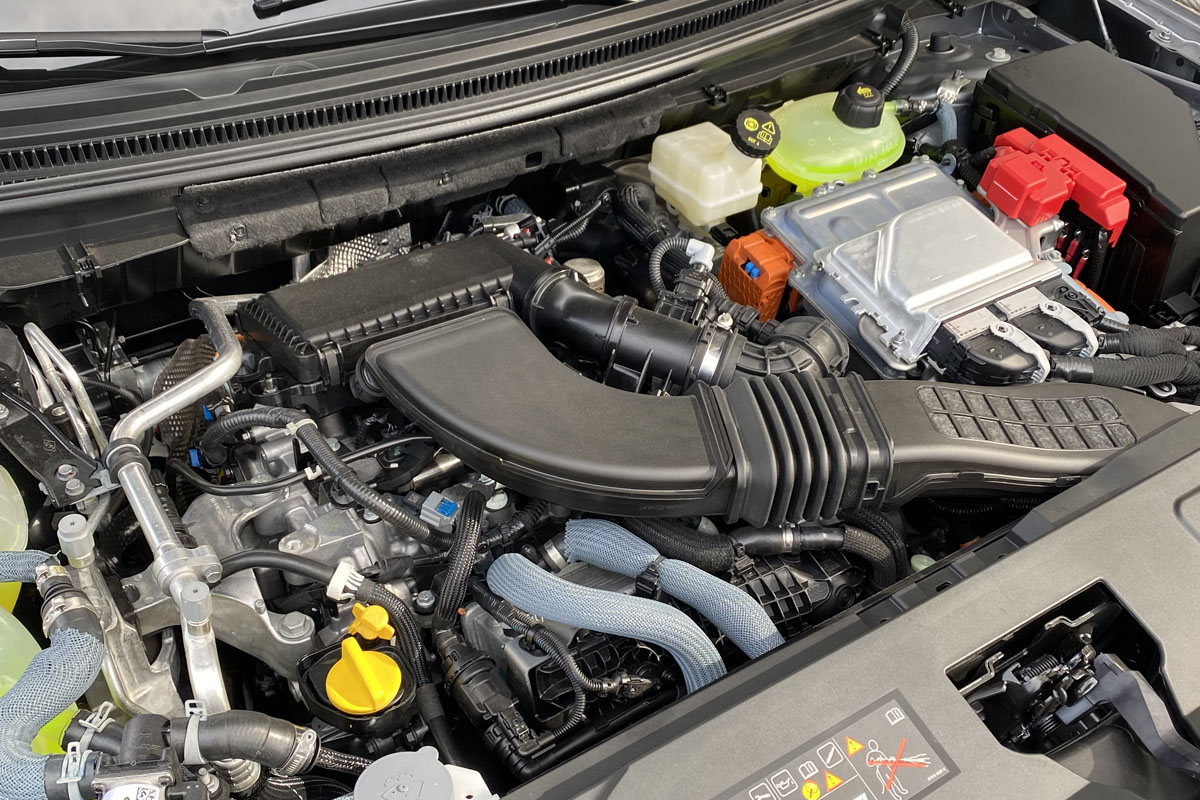 De hecho, estos Austral E-TECH se diferencian de los actuales Captur (prueba) y Arkana en la elección de los bloques. En lugar del 1.6 atmosférico, el motor de combustión es un 1.2 Turbo de tres cilindros que genera 130 CV al que se suman otros dos eléctricos: uno de 50 kW capaz de mover al conjunto y otro de 25 kW que se encarga de, digamos, hacer el trabajo sucio: actuar como motor de arranque, interceder en los cambios de marcha, recargar la batería en las frenadas…