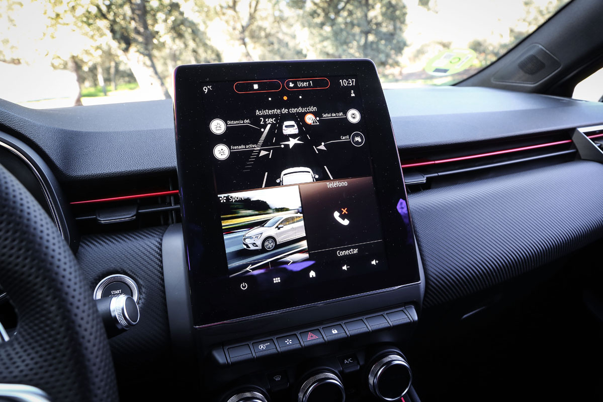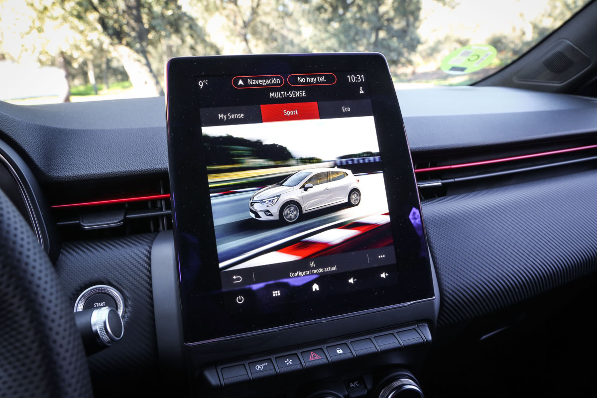 Los diseñadores del Clio han cuidado casi todos los detalles, incluyendo un hueco portaobjetos de grandes dimensiones, botones digitales y una pantalla tipo tablet en una zona muy alta para que aparte la mirada lo menos posible de la carretera. Es reseñable que Renault haya prescindido de ese material en negro utilizado en la anterior generación y que parecía un álbum de colección de huellas dactilares. Se suma un cuadro de instrumentos digital con una pantalla de generosas dimensiones que brinda mucha información y clara. Lástima que no se encargue de la navegación... -Sí lo hará próximamente, cuando equipe la pantalla de 10 pulgadas-.
