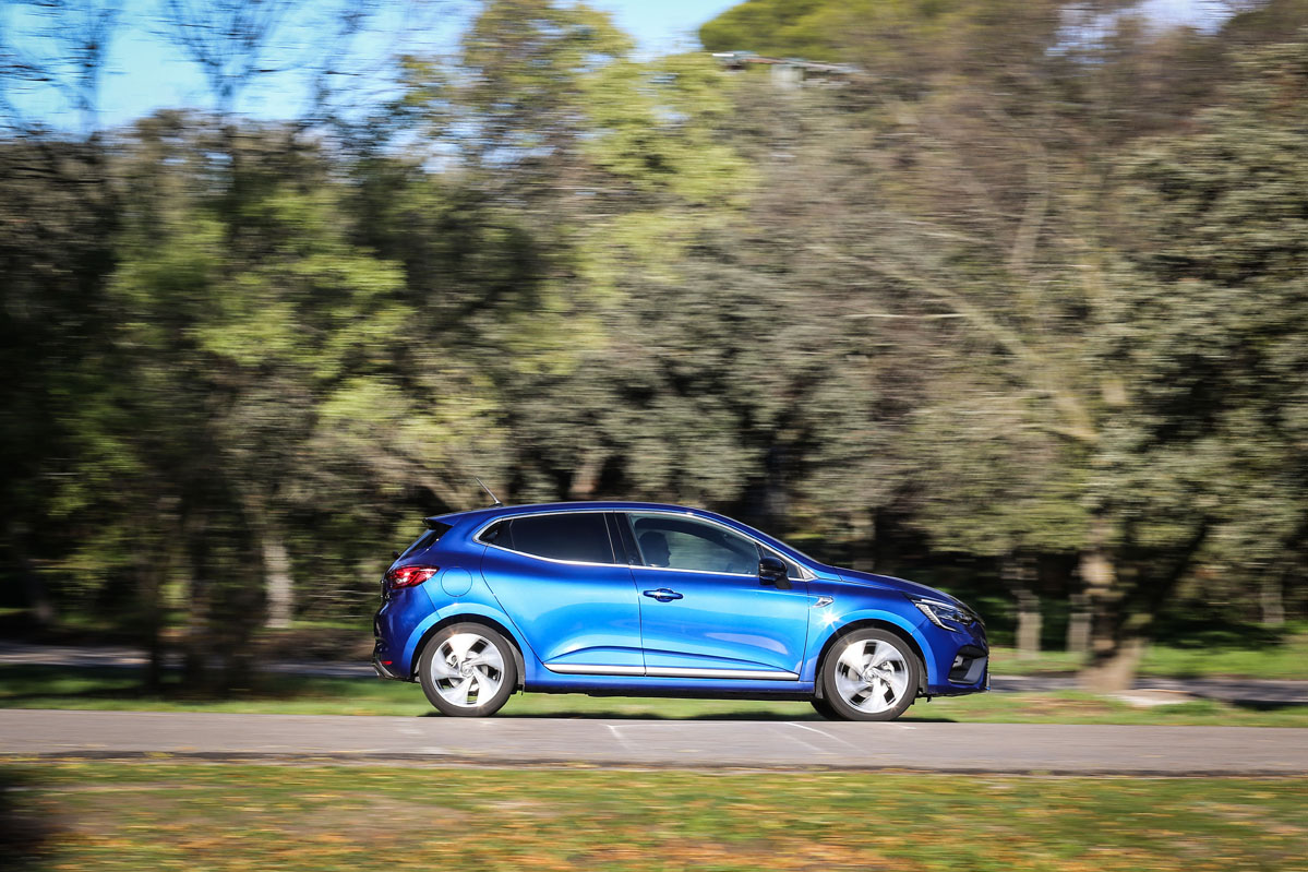 El utilitario francés presenta una imagen que recuerda muy mucho a la de su predecesor; el aumento de las ventas al final de su vida comercial, tanto en Europa como en España, ha sugerido realizar el menor número de cambios posibles en el diseño, aunque el 100% de las piezas que ven mis ojos son nuevas. También adopta algunos recursos del Mégane como la forma de los grupos ópticos delanteros, que de serie son de LED. Además, como la versión de la prueba del Renault Clio 2019 es la RS Line -con motor 1.3 TCe 130 y cambio EDC7-, su aspecto tiene ciertos toques deportivos con los que gana en atractivo. No pasan desapercibidas las llantas de 17 pulgadas ni los paragolpes específicos, los delanteros con amplias tomas de refrigeración y la parrilla inferior con patrón de panal de abeja y los traseros con una especie de difusor y un escape ovalado y cromado. Además, independientemente del acabado escogido, incorpora una novedosa y inteligente solución: el portón es más pequeño para abaratar costes, tanto de producción como en la póliza del seguro, puesto que es una de las piezas más caras.