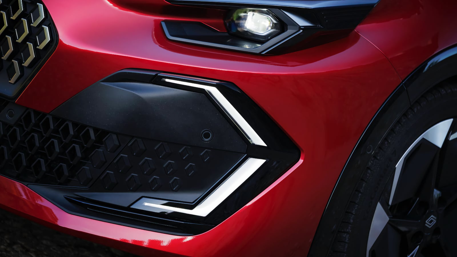 El resto del frontal tiene otros elementos que aportan personalidad. La parrilla es notable y está 'abierta' por la parte inferior, fundiéndose con la toma de aire principal. En los extremos de esta se encuentra la enorme luz diurna que se inspira en el rombo, icono de la marca, pero partido, uno en cada extremo. Lo cierto es que es una firma lumínica personal y muy reconocible, ¿el inicio de una saga?
