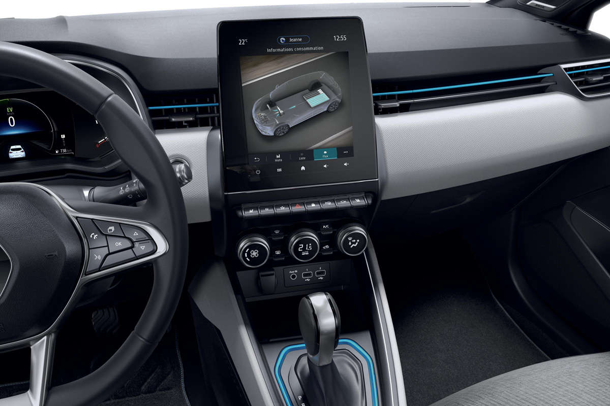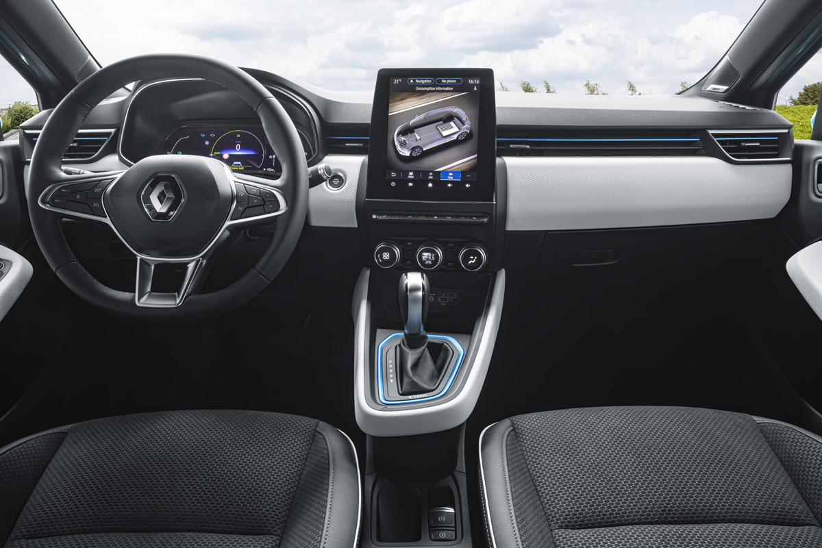 Transmisión que, por cierto, es también única pues cuenta con nada menos que ¡15 velocidades! Sí, has leído bien. De esas 15, cinco son exclusivamente térmicas, tres eléctricas y el resto surgen de la combinación de ambas dejando la última para el instante en el que todo el conjunto funcione al unísono. Al carecer de embrague, es el pequeño motor eléctrico el que se encarga de ajustar las revoluciones del motor térmico para que engrane las marchas de la manera más óptima. Según Renault, dicha transmisión es mucho más eficiente que una de tipo CVT. En cuanto a la batería va instalada bajo los asientos traseros, manteniendo la habitabilidad en este apartado y reduciendo únicamente en 18 litros la capacidad del maletero (300 l) frente a un Clio convencional.