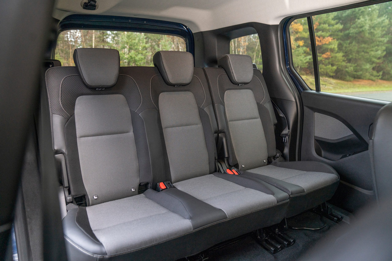 Abro la puerta de este Renault Kangoo para acceder y me sorprende su ángulo de 90º. Esta característica, junto con las puertas laterales, que son correderas, consiguen que ningún hooligan de un metro de altura se resista a acomodarse. Además, si tienes en tu familia una multitud -dicen que tres lo son-, las plazas de la segunda fila son independientes, por lo que puedes acoplar tres sillitas, más aún con sus anclajes Isofix en todas ellas.
