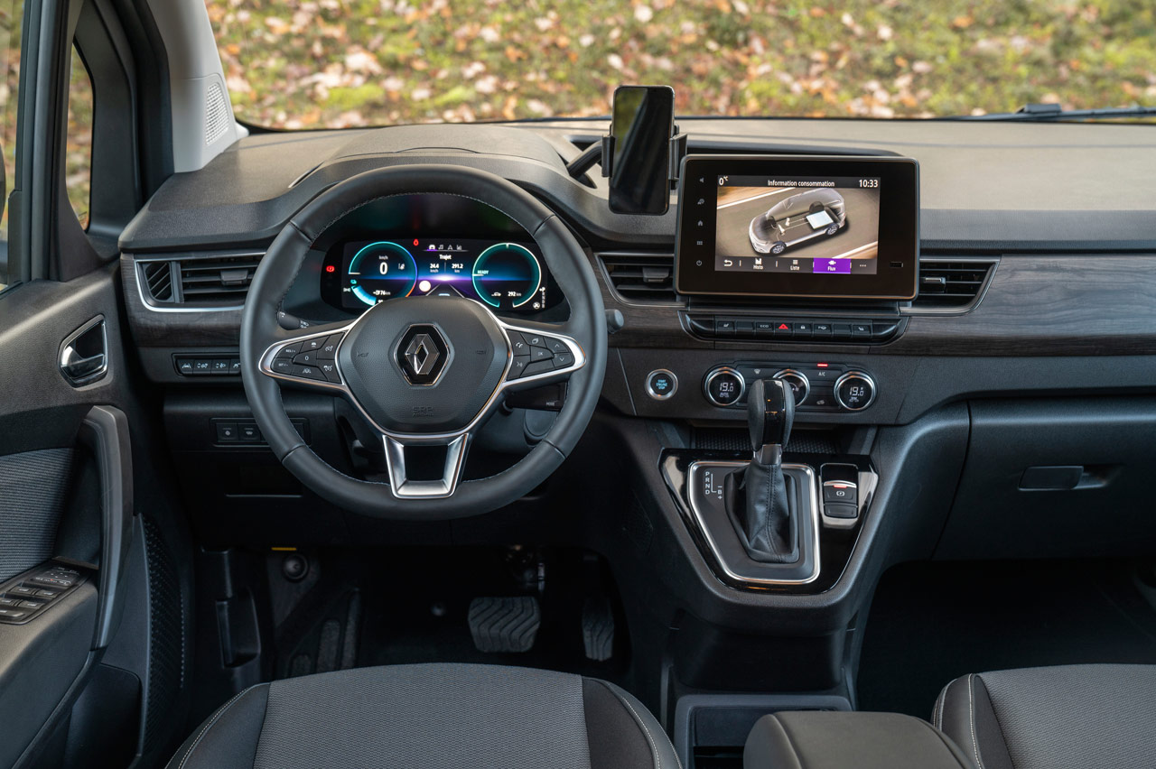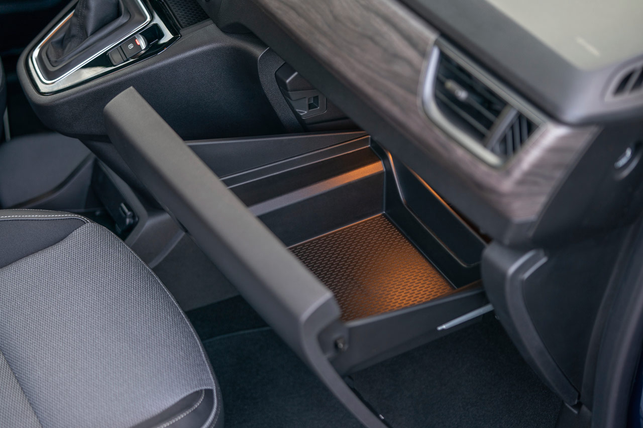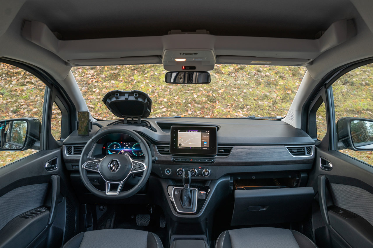 Y como tiene esa naturaleza comercial, también adopta muchos de los recursos que equipan los vehículos de este tipo como la bandeja del techo, la guantera que esconde la capilla del cuadro de instrumentos -con dos tomas USB-C y una de 12V- y la del salpicadero, que más que una guantera, podría catalogarse como un baúl. No es la primera vez que veo algo así, puesto que el Renault Espace -acaba de ser presentado el Renault Espace 2023- presumía de una parecida. Se suman los huecos portaobjetos, que en conjunto añaden 50 litros, y el soporte para el móvil, un elemento realmente práctico.