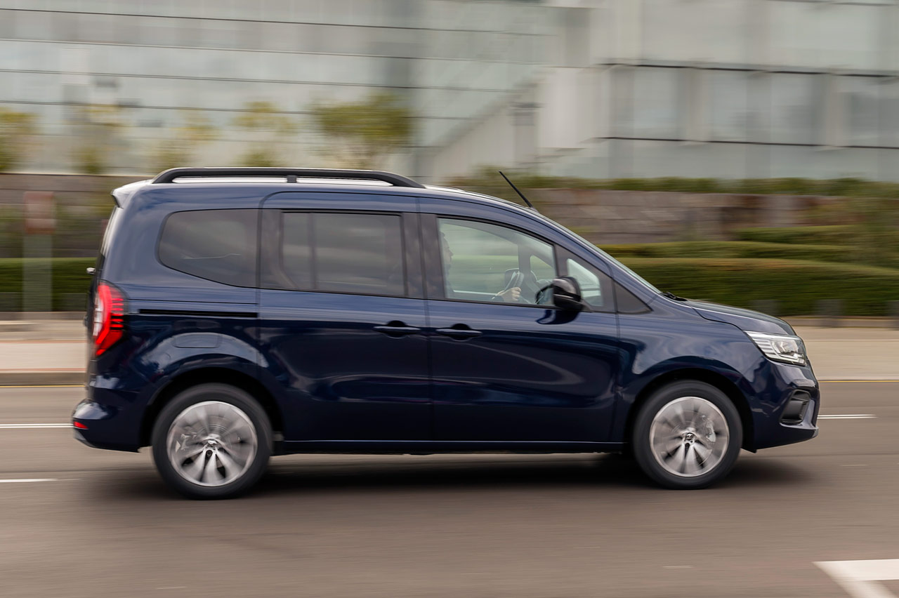 Y es por la batería, principalmente, por lo que en la báscula el Kangoo Combi E-Tech pesa 1.870 kg. Y ese es el 'lastre' en aceleración, aunque pasa de 0 a 100 km/h en 12,6", que tampoco está mal para su potencia. Lo bueno es que tienes ese par de forma instantánea, y se nota. Para que te hagas una idea, si lo comparamos con el Nissan Townstar Combi 1.3G de 130 CV, 10 CV más, y 1.550 kg, 320 menos, el japonés tarda en alcanzar los 100 km/h desde parado dos décimas más -también es verdad que monta cambio manual-.