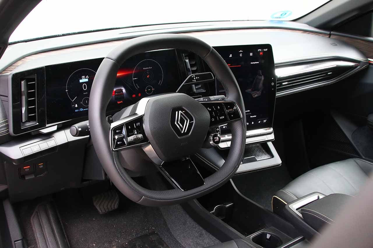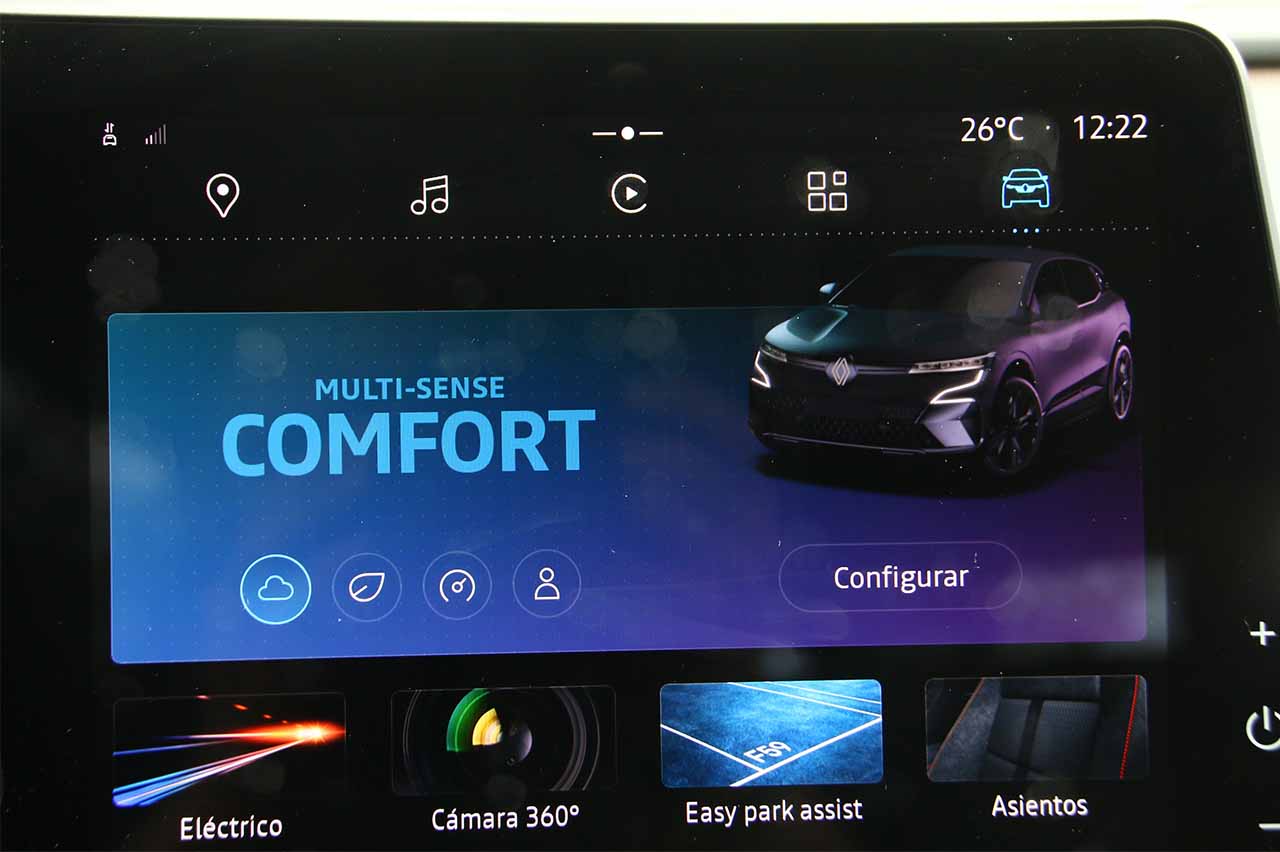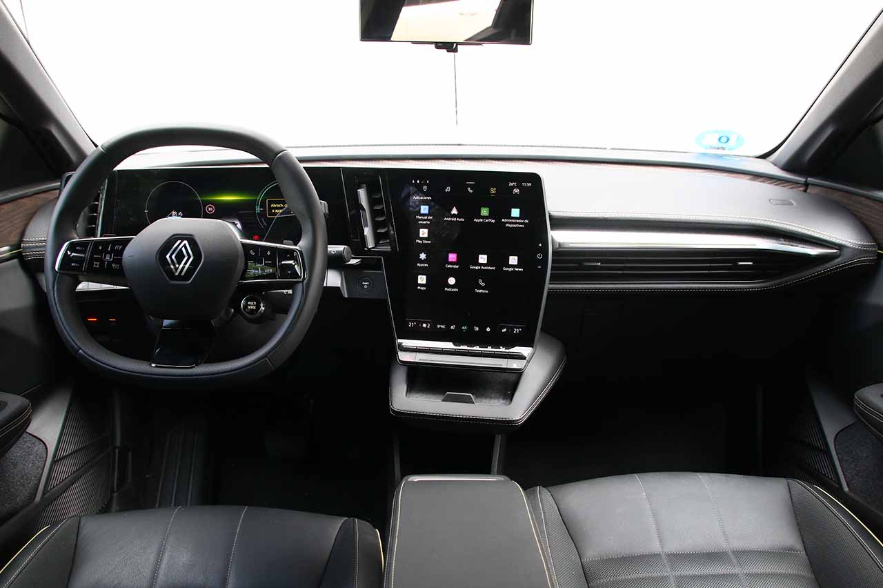 El interior del Renault Mégane E-TECH de esta prueba sorprende mucho. Muchísimo. Lo más destacable en mi opinión es su calidad de fabricación, tanto de materiales como de ajustes. Desluce un poco el negro piano que recubre ambas pantallas, la de instrumentación y la del sistema de infoentretenimiento. Las dos tienen 12 pulgadas y el display multimedia hace las veces de consola central.