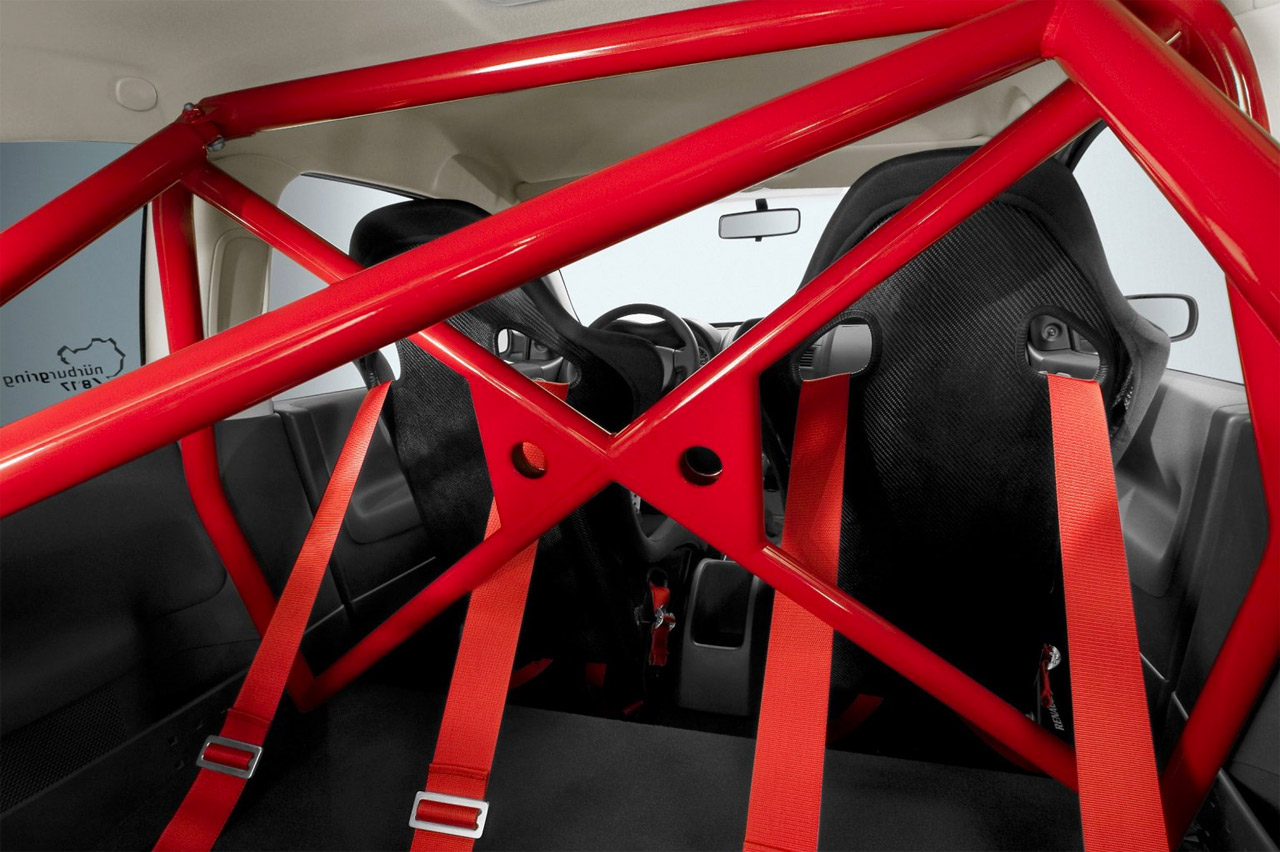 Un aspecto esencial fue la reducción de peso del coche, con una impresionante rebaja de 123 kilos, para alcanzar los 1.230 kilogramos en vacío. Y no solo eliminando detalles como el equipo de sonido, todos los airbags menos el del conductor, el material de aislamiento acústico, los antinieblas delanteros o el limpialuneta trasero. También, adoptando un capó de carbono y eliminando los asientos traseros.