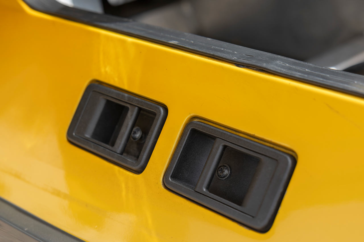 Para acceder al habitáculo es necesario pasar la mano por el interior y accionar el tirador, que son herencia del Renault 5 y del 11, entre otros modelos de la firma. Unas puertas que solo tiene cerradura la del conductor, y cuyo umbral esconde los tiradores de ambos capós.