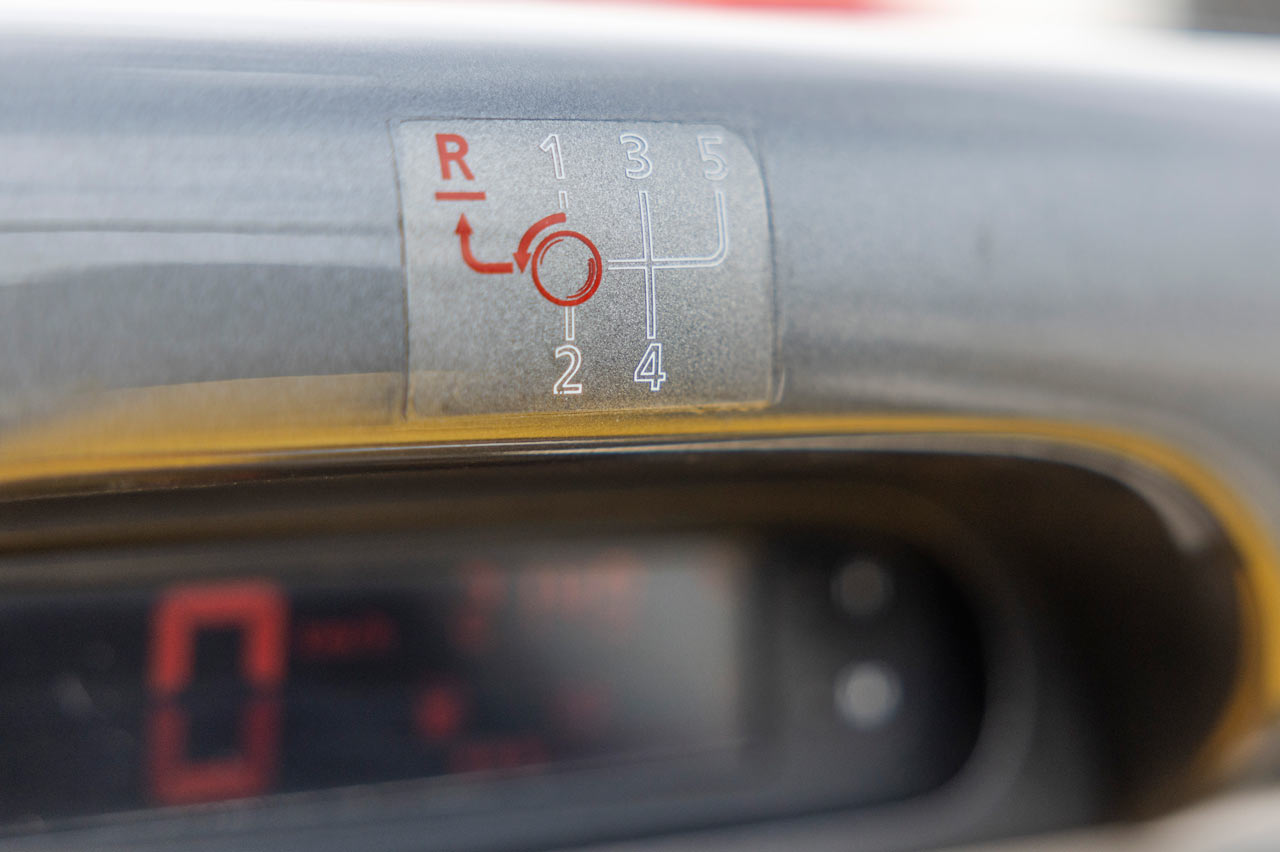 El pomo del cambio, que es una bola plateada -me vuelve loco porque me recuerda al del (prueba) Renault Clio V6, coche que tengo en un pedestal desde mi juventud-, se puede girar. Mejor dicho, se debe girar si quieres insertar la marcha atrás.