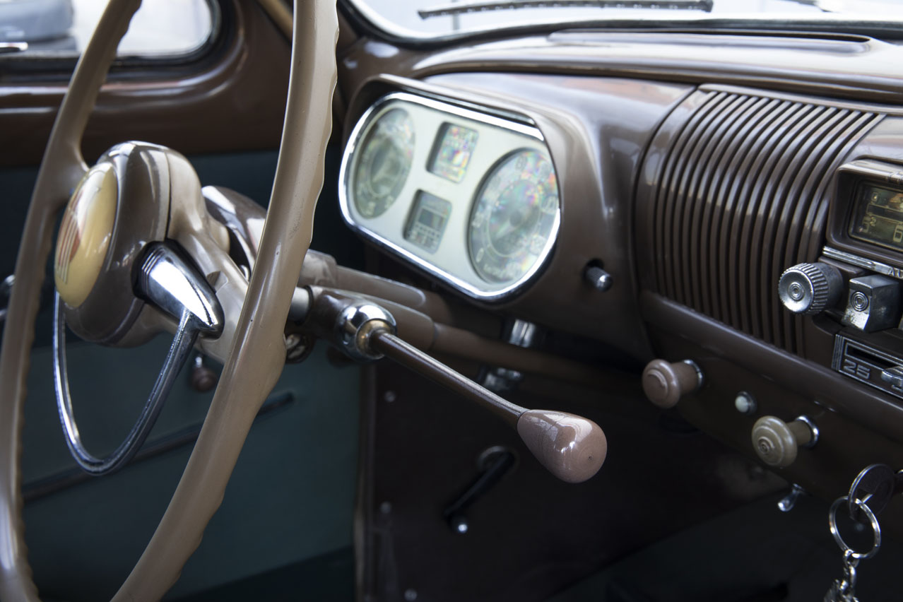 Y la prueba del Seat 1400 la realizamos en pleno mes de julio, en Barcelona, con una temperatura ambiente de 37 grados centígrados y con una humedad del 90%. Y no exageramos nada si llamamos héroes a los conductores de estos coches en la época por tener que conducir en esas condiciones. Para más inri, el cambio de marchas se realizaba desde una palanca en la columna de la dirección, y la maniobra no era ni rápida ni fácil. Tenía cuatro marchas con segunda, tercera y cuarta sincronizadas, además de marcha atrás. Pero una vez acostumbrados a esta tipo de cambio muy americano, el 1400 coge velocidad acompañado de un silencio de marcha sobresaliente para la época.